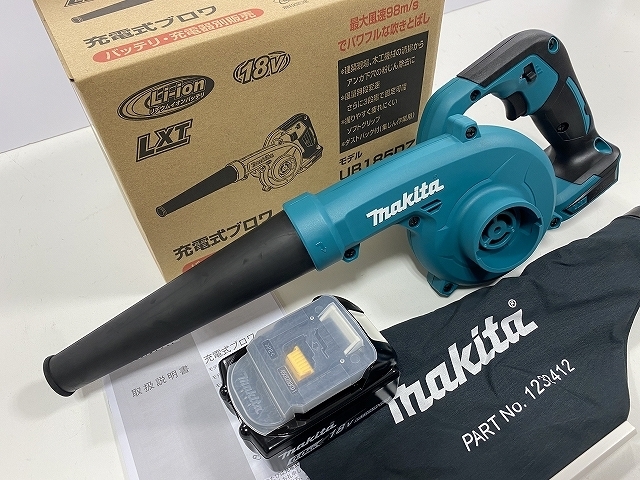 ■マキタ 18V 6.0Ah 充電式ブロワ UB185DZ 本体+バッテリーBL1860B (ノズル・集塵袋付き) ★新品・未使用 ★マキタ純正18V-6.0Ah バッテリー BL1860B 1個付き ★強力吹き飛ばし&コンパクト! ●3段階のダイヤル調整+無段変速機能付 ●最大風量が向上! 約23%アップ! ●ソフトグリップ&最適グリップ形状 ●ダストバッグ(標準付属品)のダストバッグ使用で集じん作業も可能です。 【仕様】 ブロワ 風量(m3/min)[m3/分]:0~3.2 ブロワ 風速(ノズル付き)(m/S)[m/秒]:98 機体寸法(長さ×幅×高さmm):517×156×210 質量:1.8kg 標準付属品:バッテリ、ダストバッグ・ノズル ※18V-6.0AhバッテリーBL1860B付きです。 ※充電器は別売です。 ★この機会に是非!お買い上げください! |
