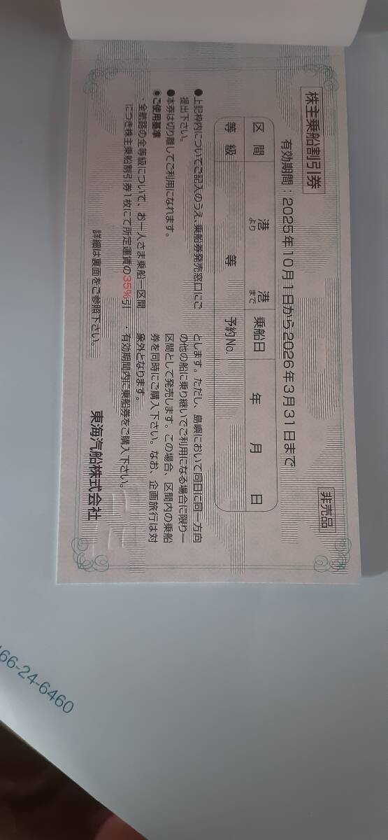 東海汽船の株主乗船割引券です、一冊に10まいついています
