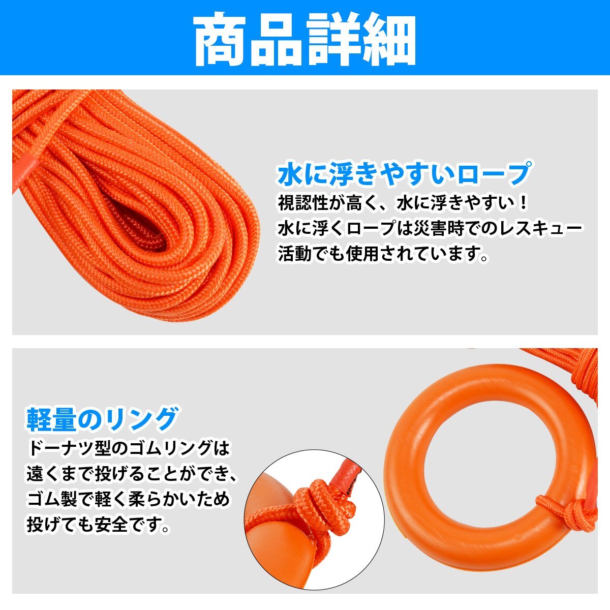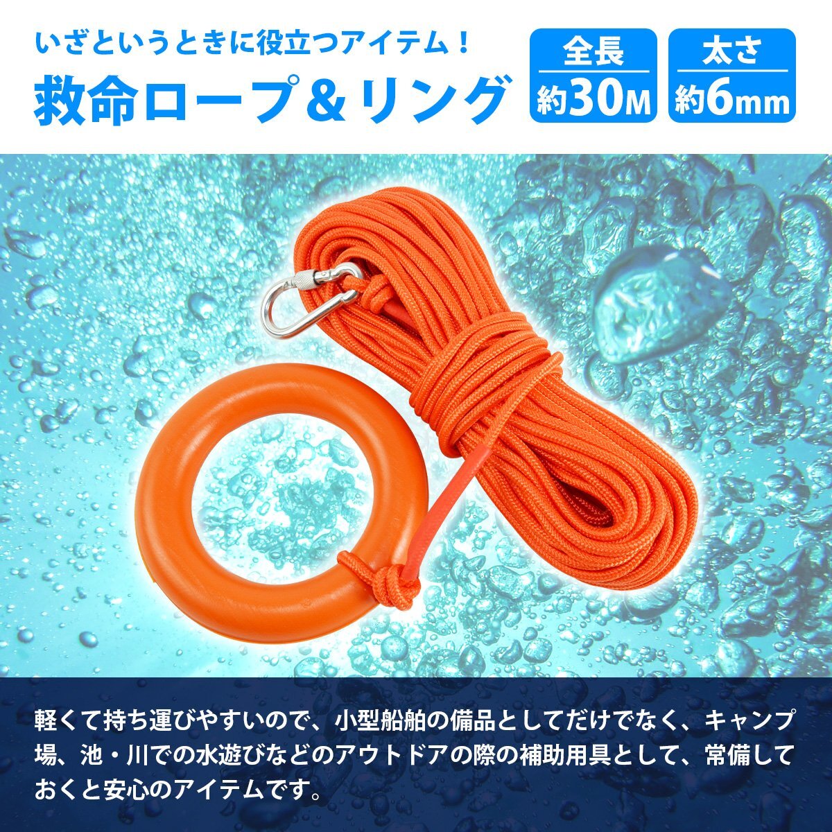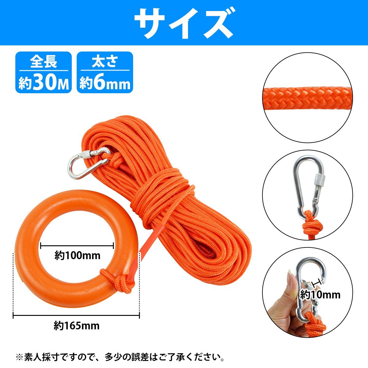 カラビナ付き レスキューロープ 救命リング 一体式 6mm 30M フロート ロープ 事故 災害 救助 救命 海 川 プール 釣り 船 浮き