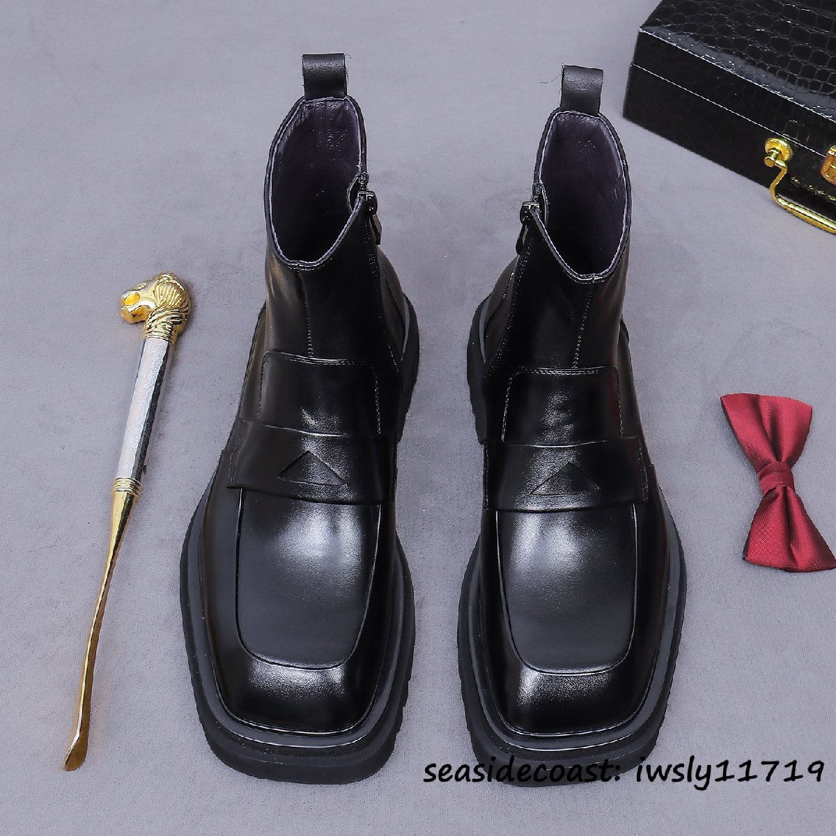 定価12万◆メンズ ブーツ マーティンブーツ 本革 レザーブーツ サイドジップ 職人手作り ショートブーツ イギリス風 牛革 ブラック 24.5cm