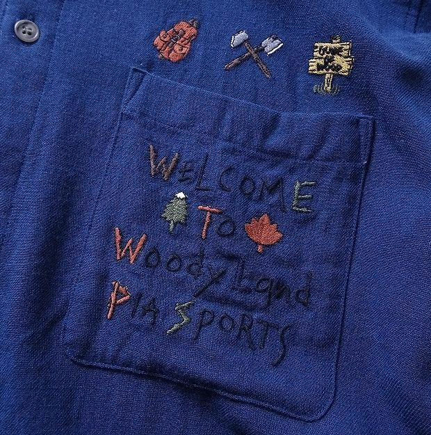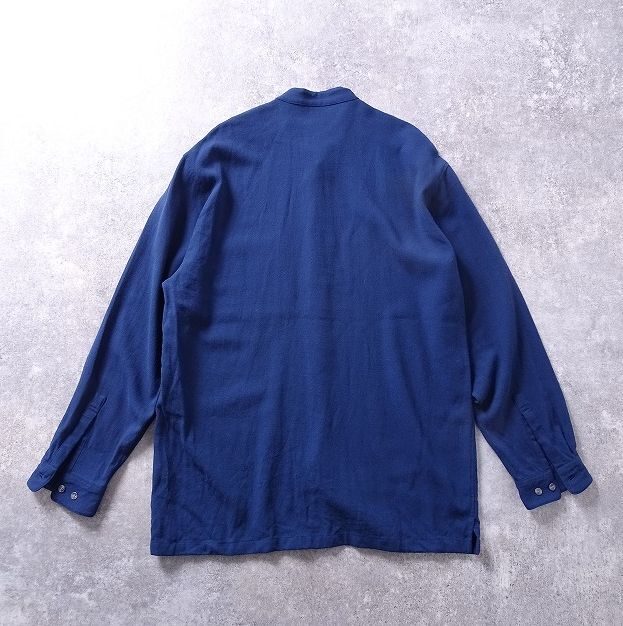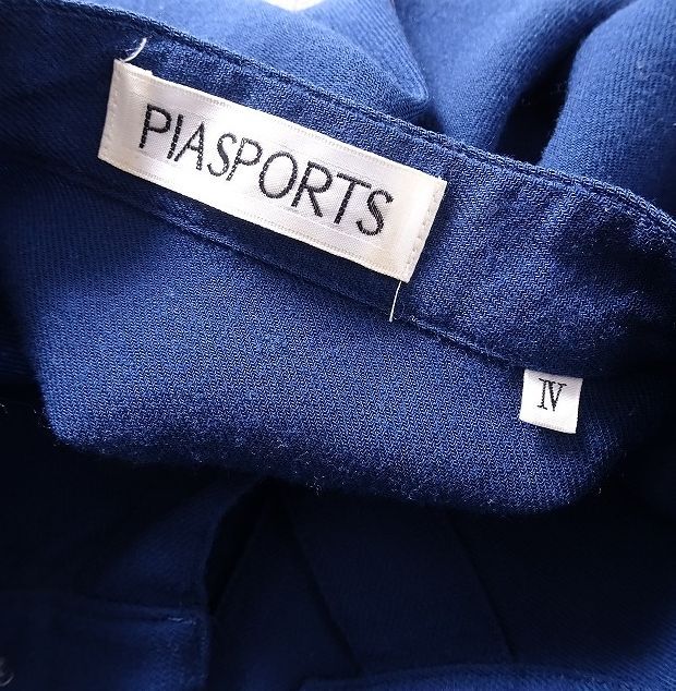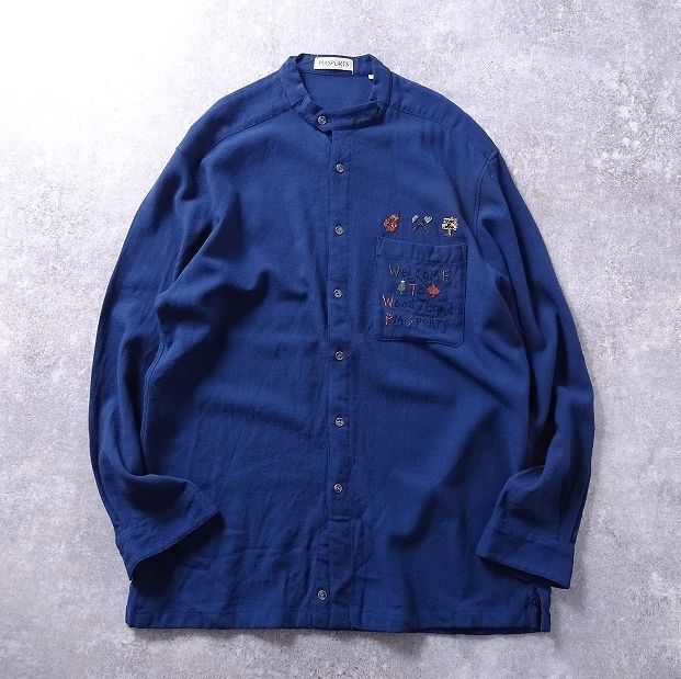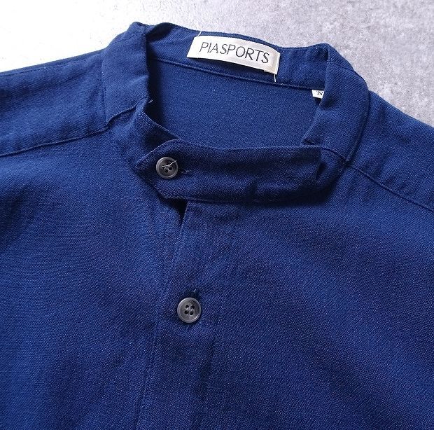 PIASPORTS ピアスポーツ ウール100% バンドカラー 長袖シャツ ロゴ イラスト 刺繍 日本製 ライカ メンズ (4) ネイビー ●r-936