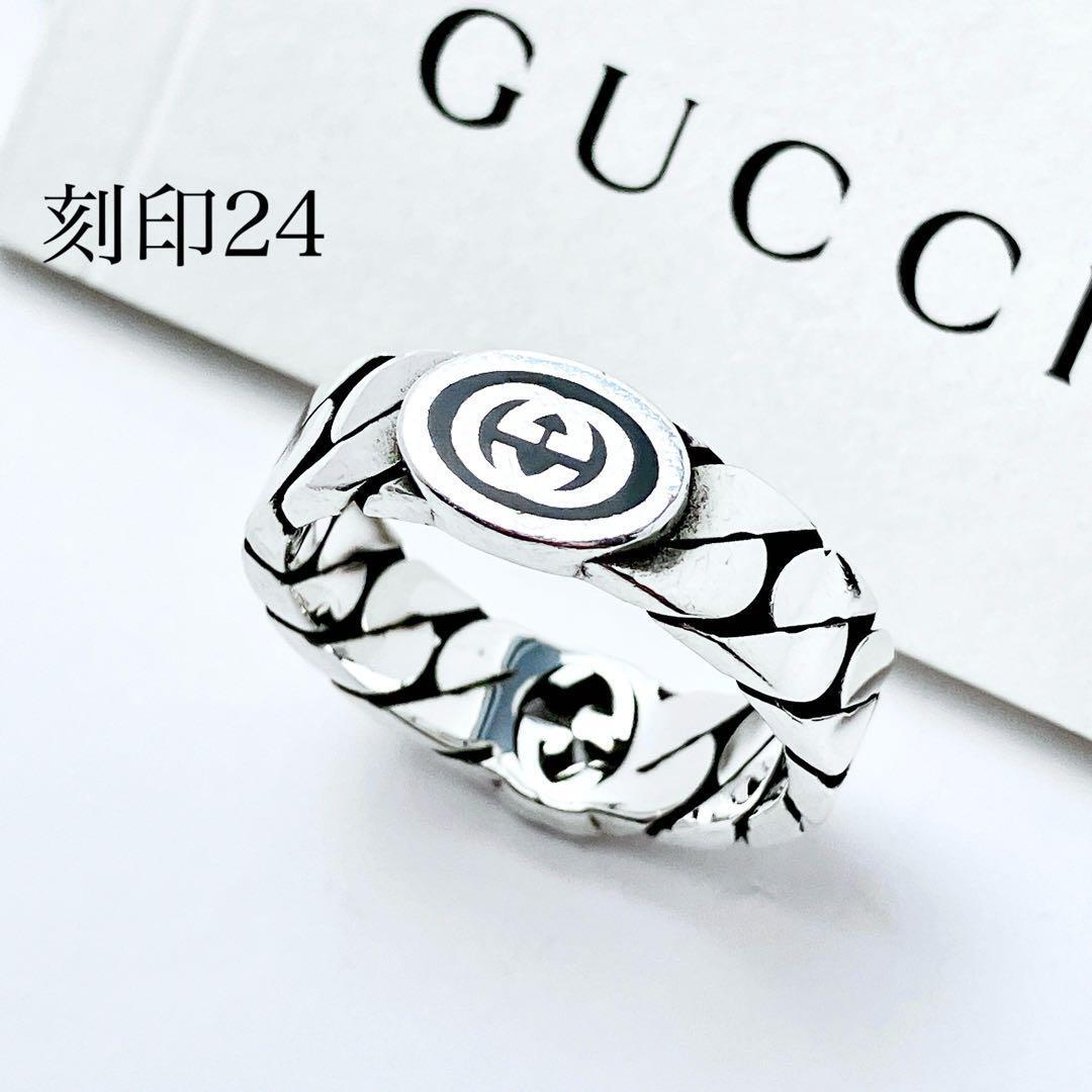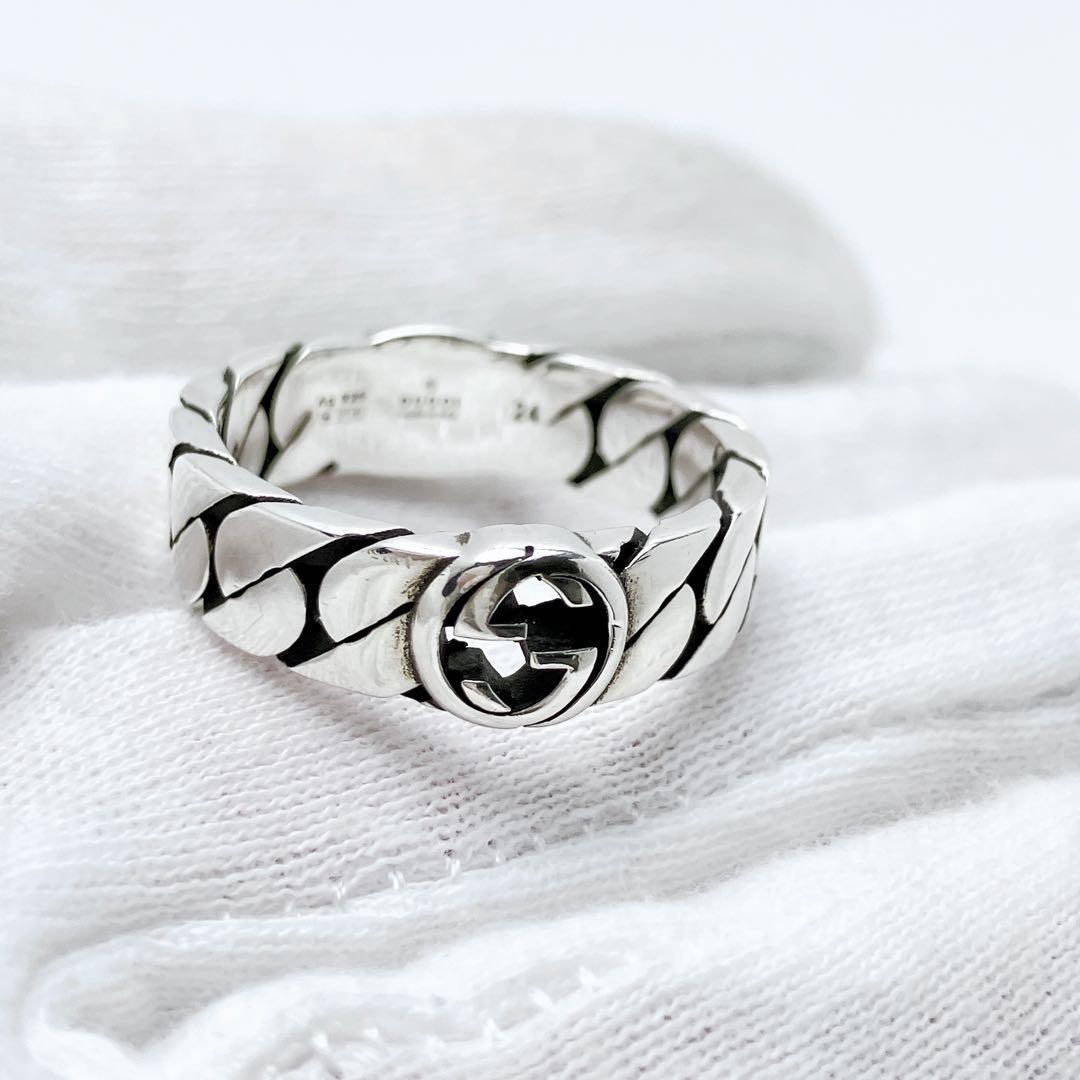 洗浄済 グッチ GUCCI 925 リング 指輪 シルバー メンズ OT542 アクセサリー インターロッキング 鏡面