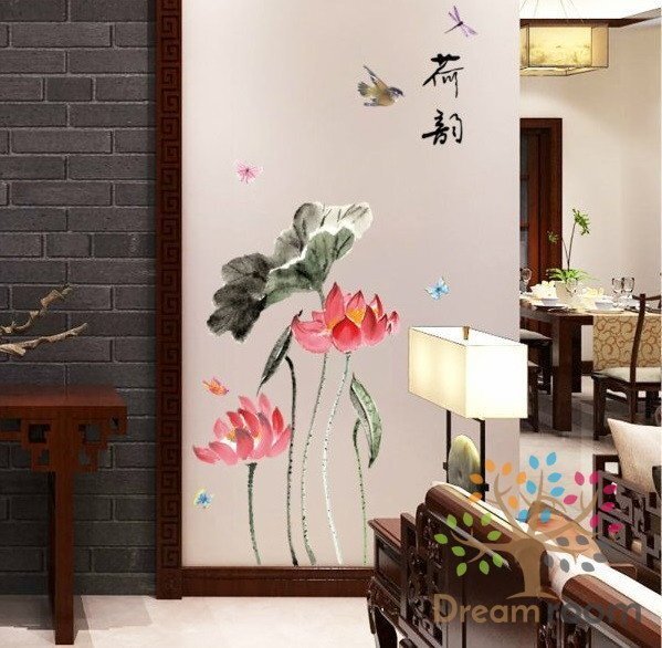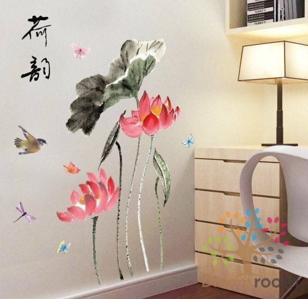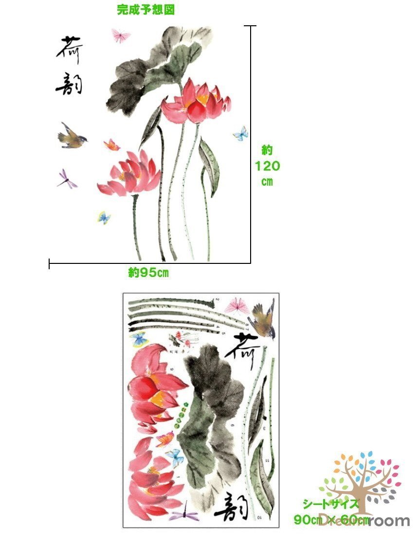 1スタ☆和柄 水墨画調 蓮の花 ロータス デカール ウォールステッカー 【C829】インテリアステッカー はがせるシール