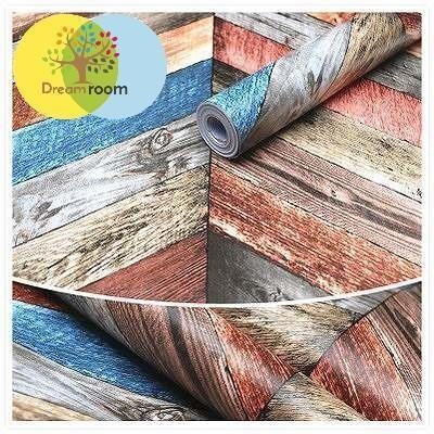送料込 3D アンティーク B134 ヘリンボーン 木目 10m ストーン 壁紙 北欧 インテリア はがせるシール DIY ウォールペーパー 糊付き