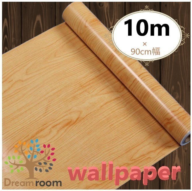【 10m 】 3D 壁紙 90cm 幅広 木目 ナチュラルベージュ B20 アンティーク ウォールペーパー北欧風 インテリア はがせる シール DIY 賃貸