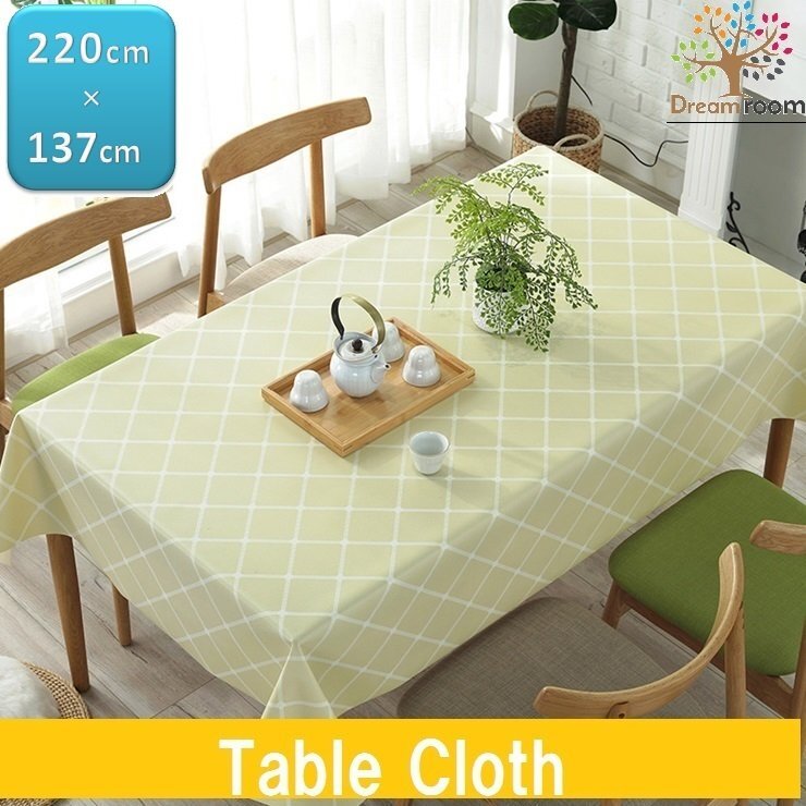 テーブルクロス 黄色格子柄 PVC製 防水 防油 加工 長方形 220cm×137cm ランチョン ティーマット テーブルリネンセットI-003