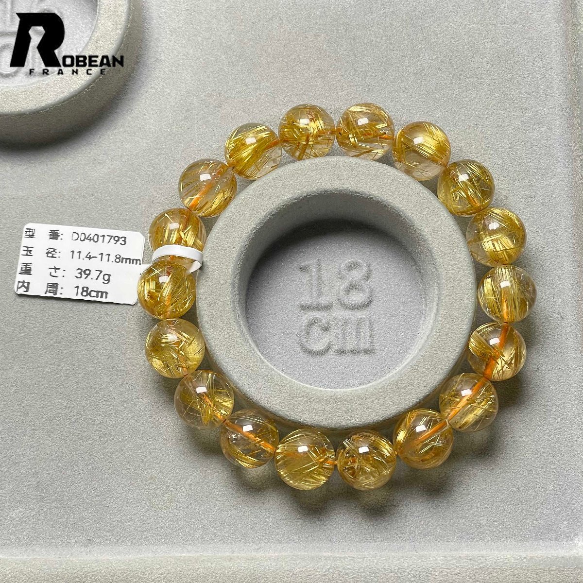 夢色 EU製 定価131万円★ROBEAN・極!極満針ルチルクォーツ★ ブレスレット パワーストーン 天然石 金運 お守り 11.4-11.8mm D0401793
