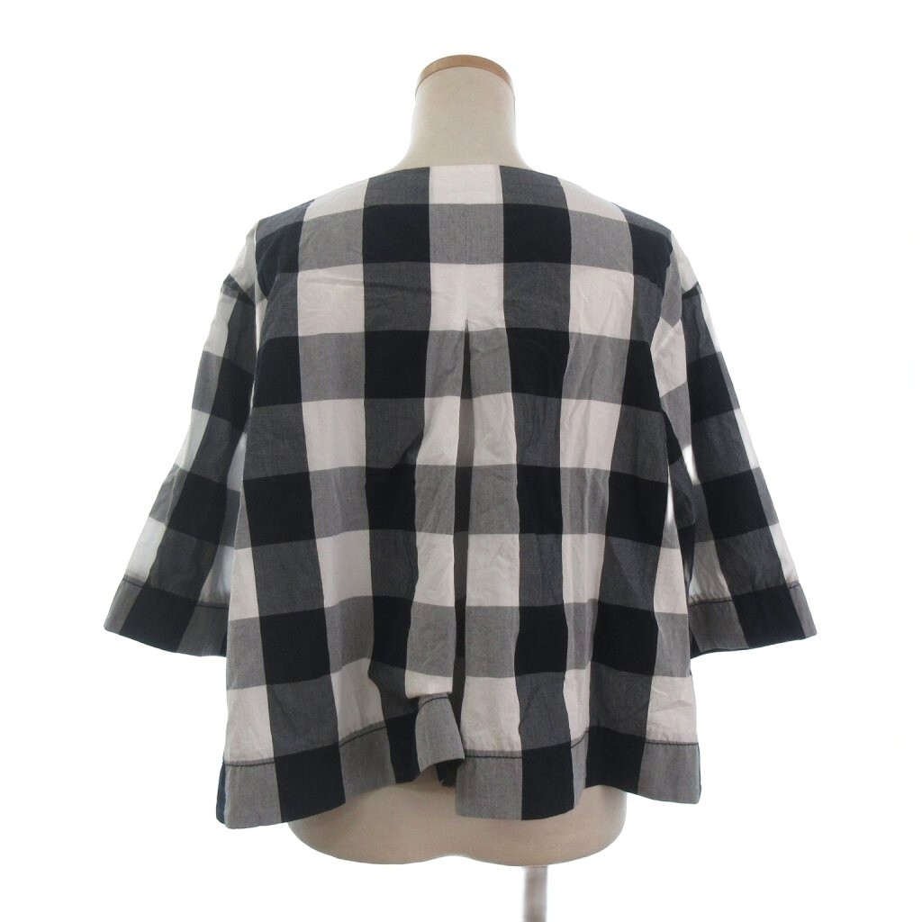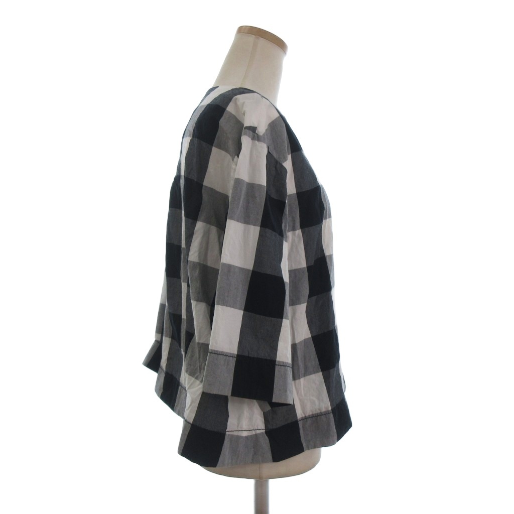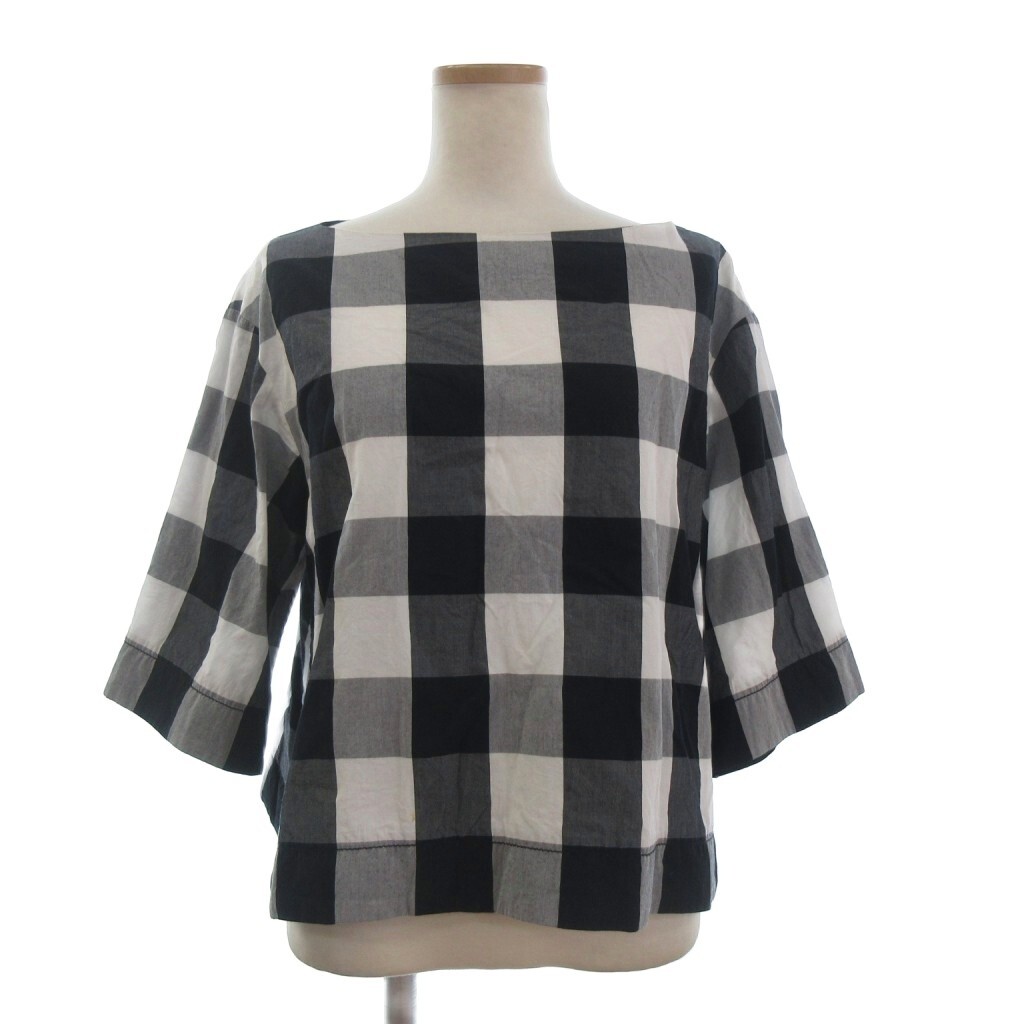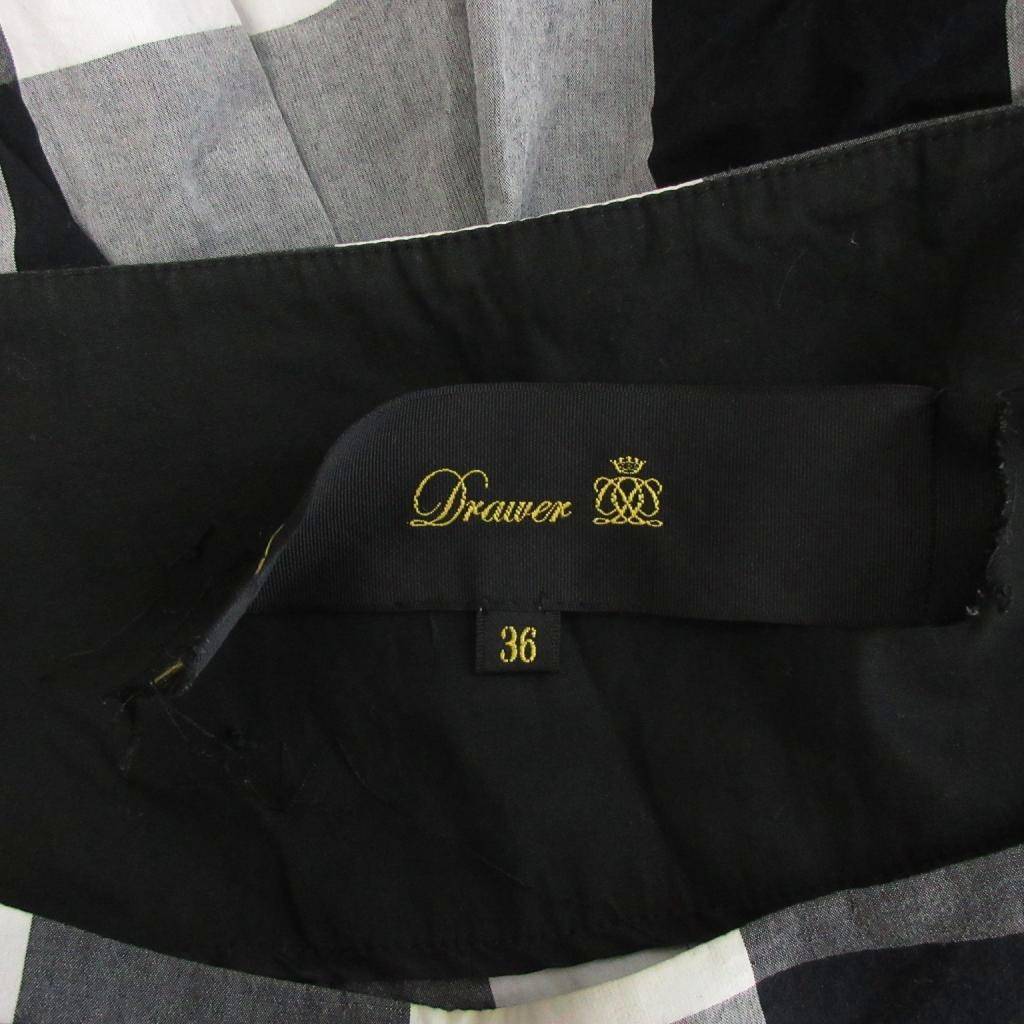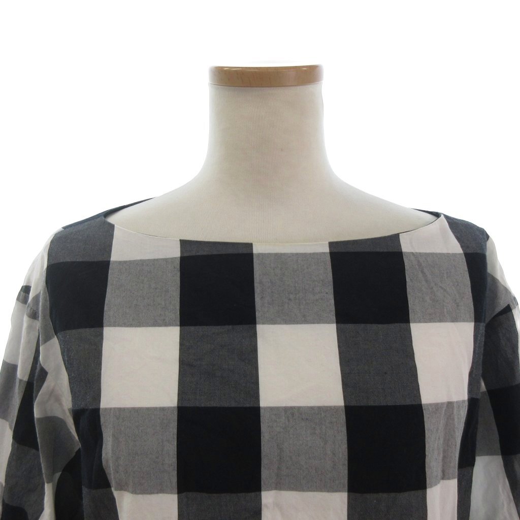 ドゥロワー Drawer プルオーバー カットソー 半袖 ブロックチェック コットン 6521-299-0441 白 ホワイト 黒 ブラック 36 レディース