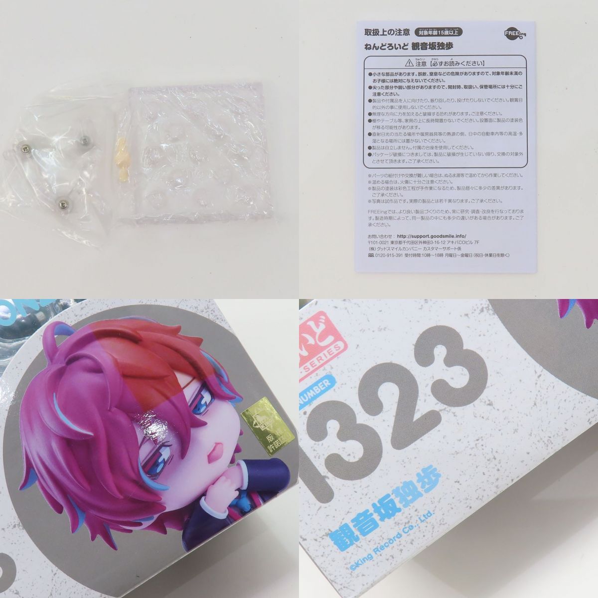 066 FREEing フリーイング ねんどろいど 1323 ヒプノシスマイク -Division Rap Battle- 観音坂独歩 フィギュア ※中古 □JAN:4571245299260 □内容品:画像にあるもので全てです。 □状態 本体にはスレキズ、右靴の辺りに糸が出ています。 替えパーツの顔には薄っすらとヨゴレがあります。 箱には変色、スレキズ、キズ、ヨゴレ等のダメージがあります。 □備考:なし ※画像では判別しづらいUSED品特有の薄い汚れや薄いキズ、細かいキズなどある場合があります。 |