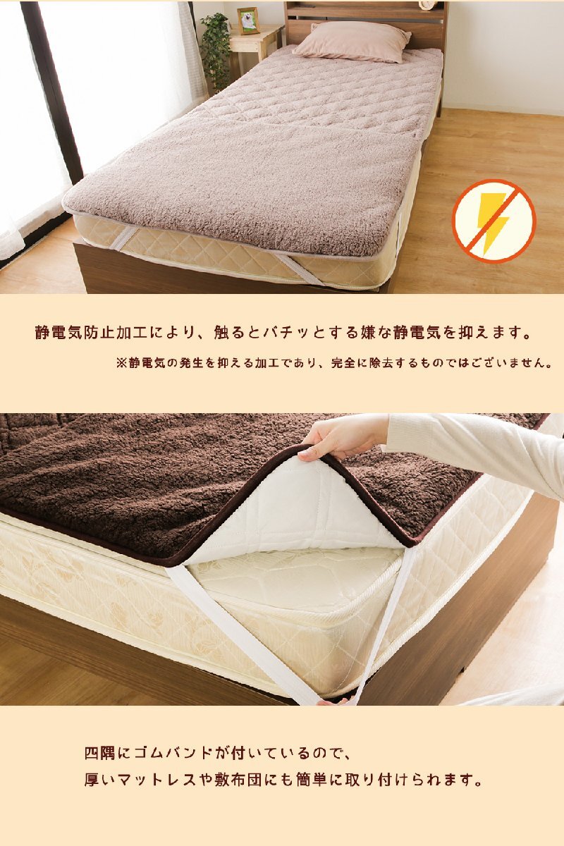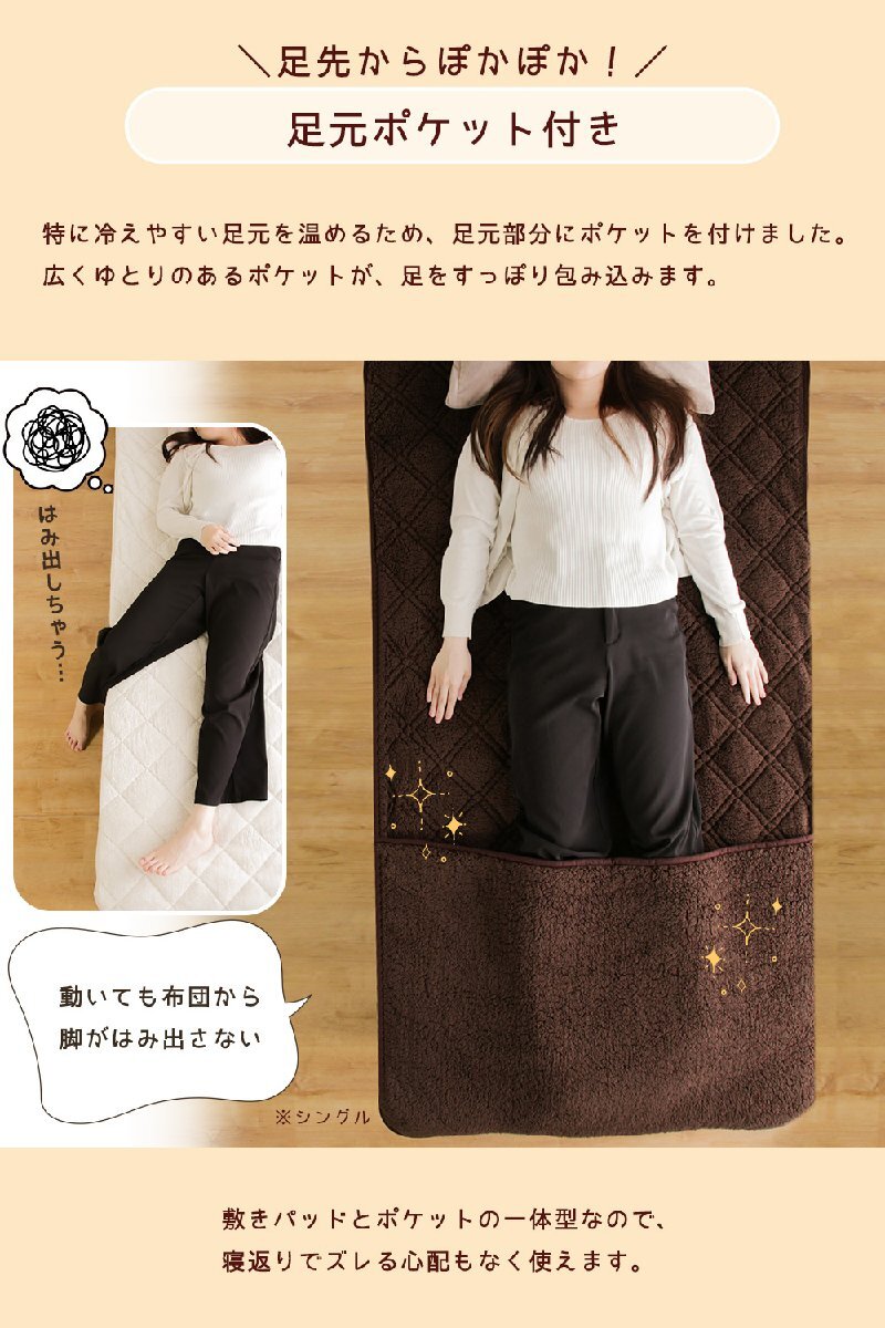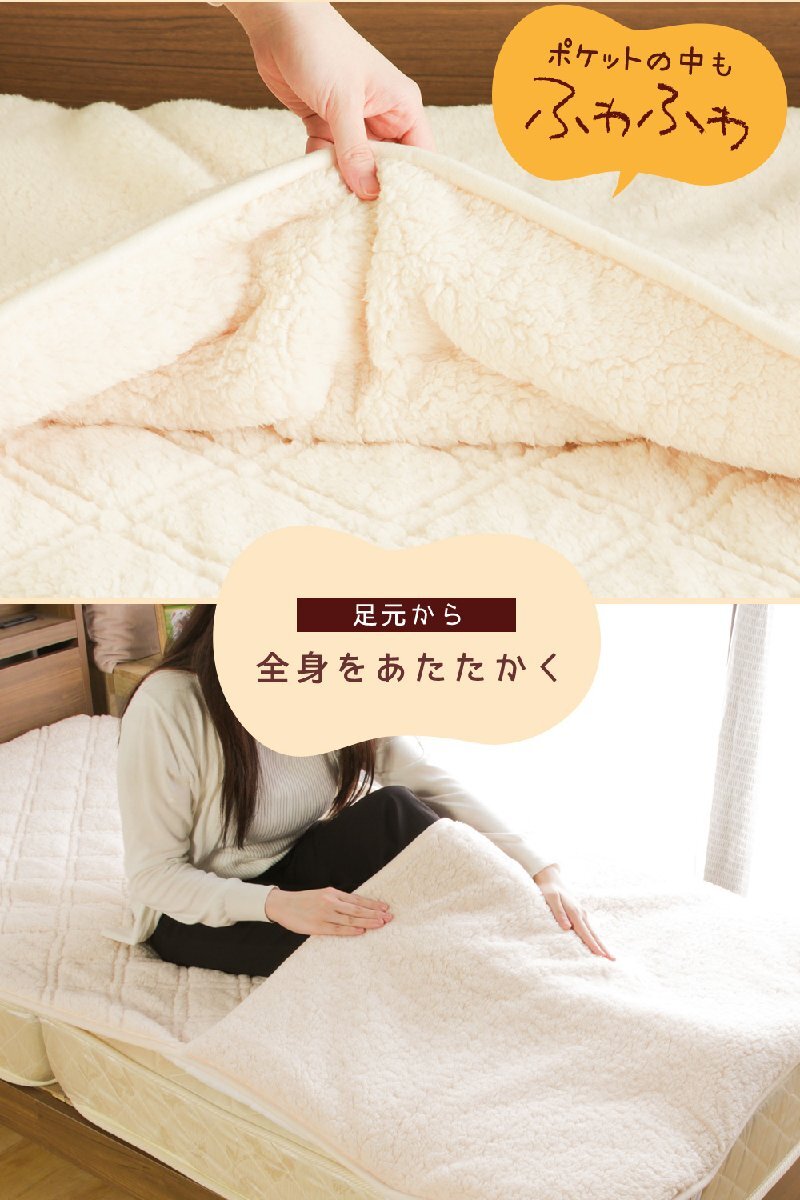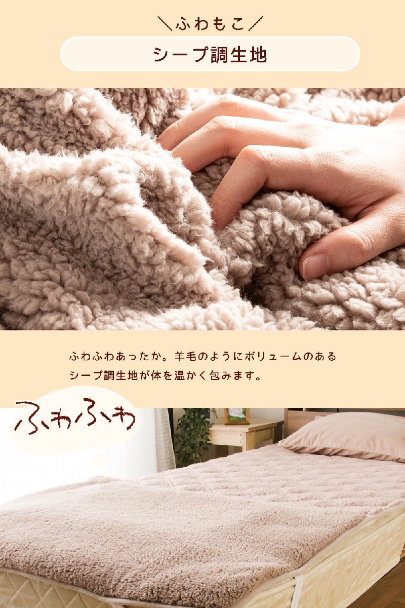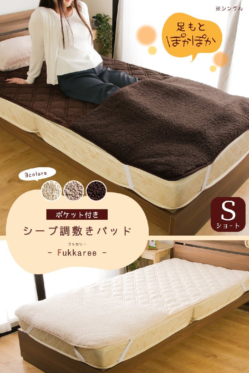敷きパッド ポケット付き ダブル D 140×200cm 足ポケット シープ調 もこもこ あったか 敷き布団 洗える 静電気防止 寝具 アイボリー