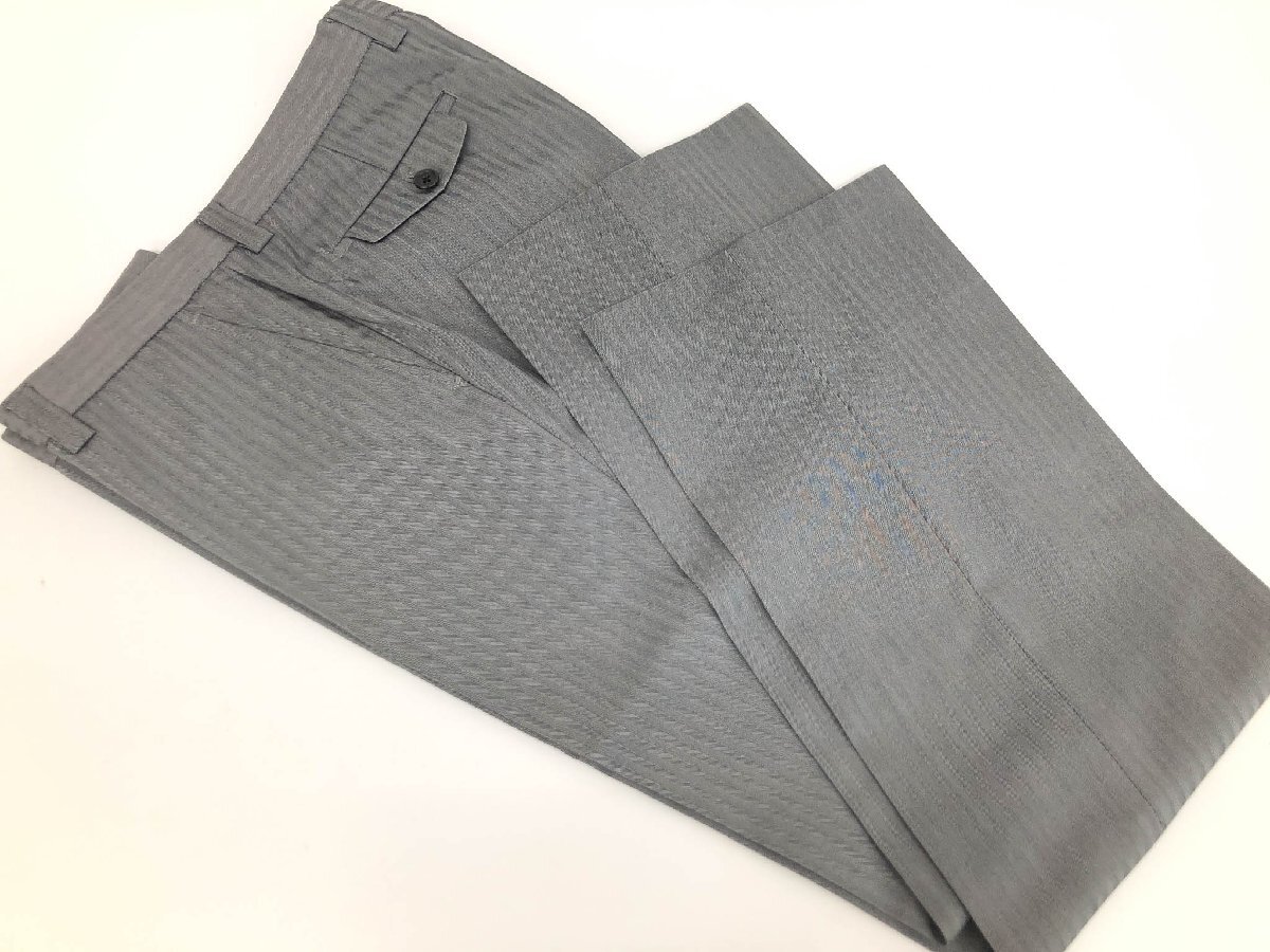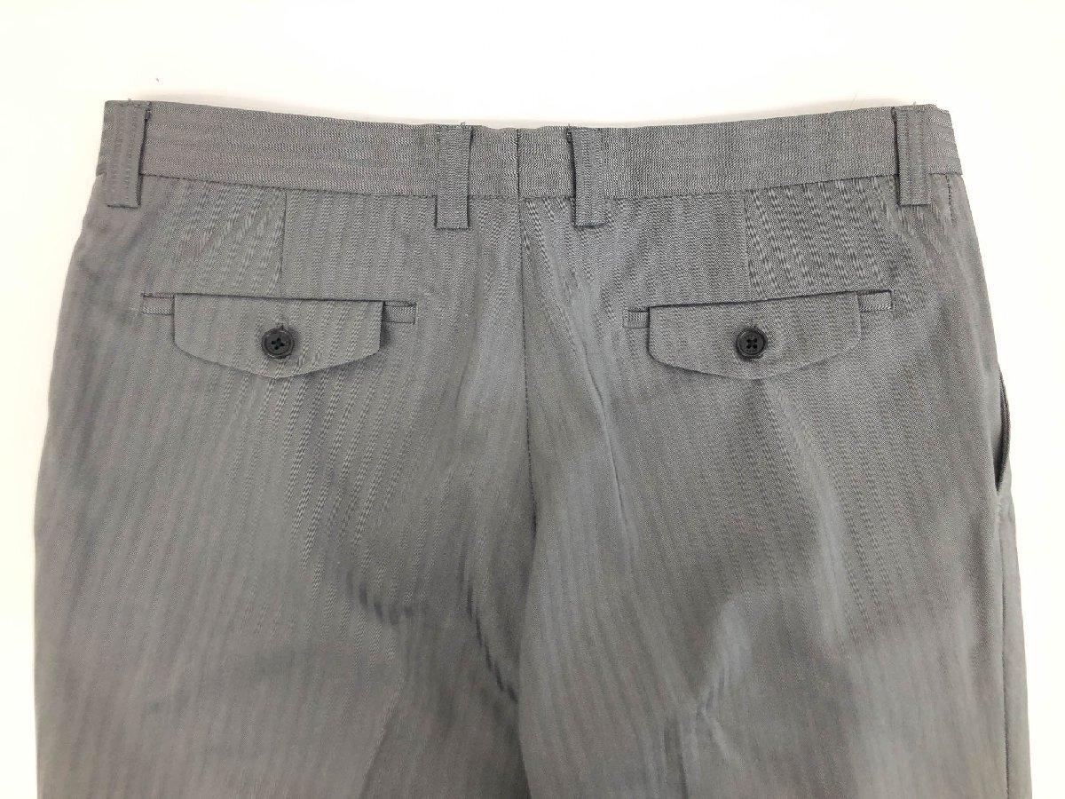 ・スラックス・・・ウエスト実寸約80センチ(4センチ出し、4センチ詰めが可能)、股上約25センチ、渡り幅約31~32センチ、股下約75~76センチ、総丈約99~100センチ、裾幅約22センチ、シングル仕上げ(最大でプラス7センチ長くできます)