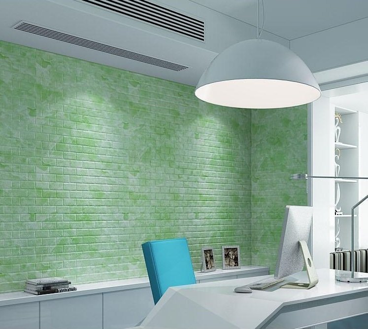 【30枚】高品質 3D クッション 壁 シール 大理石×グリーン レンガ調 糊付き リメイク 70×77cm 耐水 抗菌 傷防止