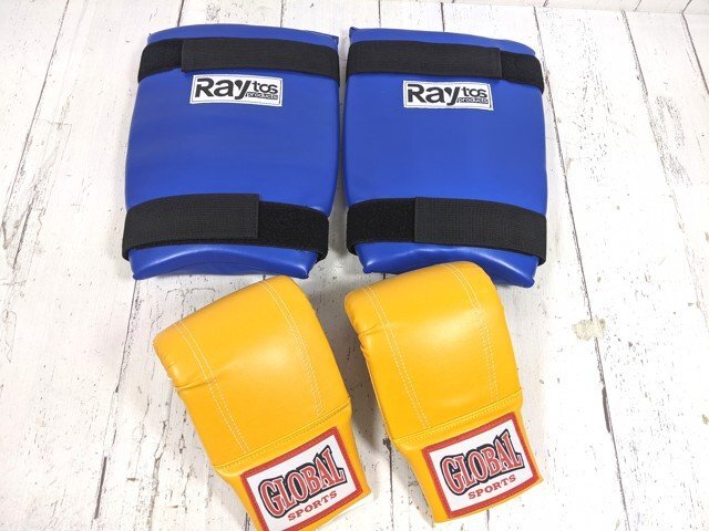 格闘技 ボクシンググローブ メーカー:GLOBAL カラー:黄土色 サイズ:M 重さ:約136g 全長:約20㎝ レガース メーカー:Raytos カラー:青 大きさ:約22.5cm×32cm -------------------- その他多数商品を出品中!! 出品商品一覧は→こちらをクリック -------------------- | ||||||||||||