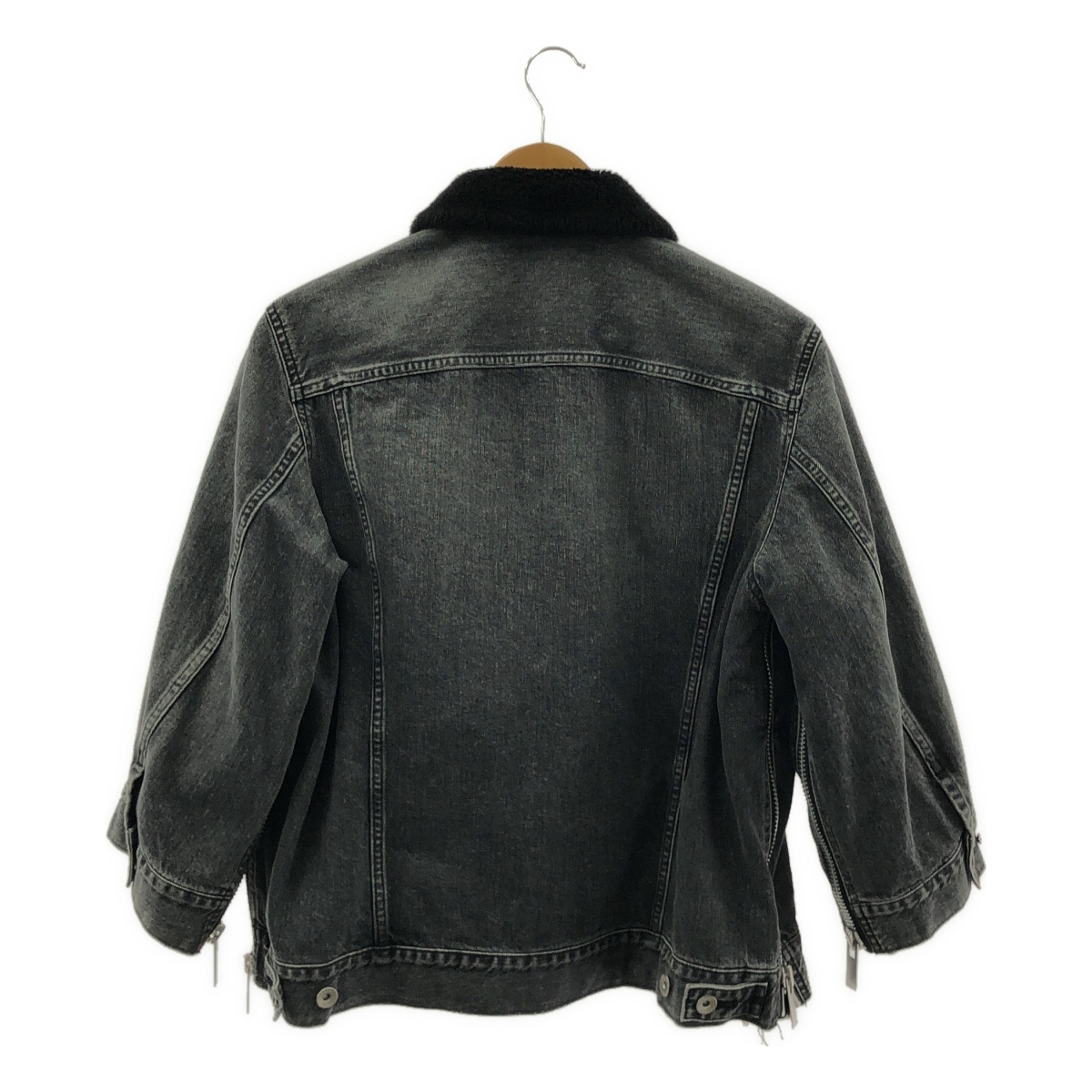 sacai / サカイ | ボアカラー サイドジップスリット ブラックデニム ジャケット | 2 | チャコールグレー | レディース