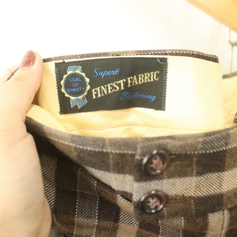 a900 60sビンテージ FINESTABRIC ウールスラックスパンツ■1960年代製 約Mサイズ ブラウン ブーツカット TALONジッパー チェック
