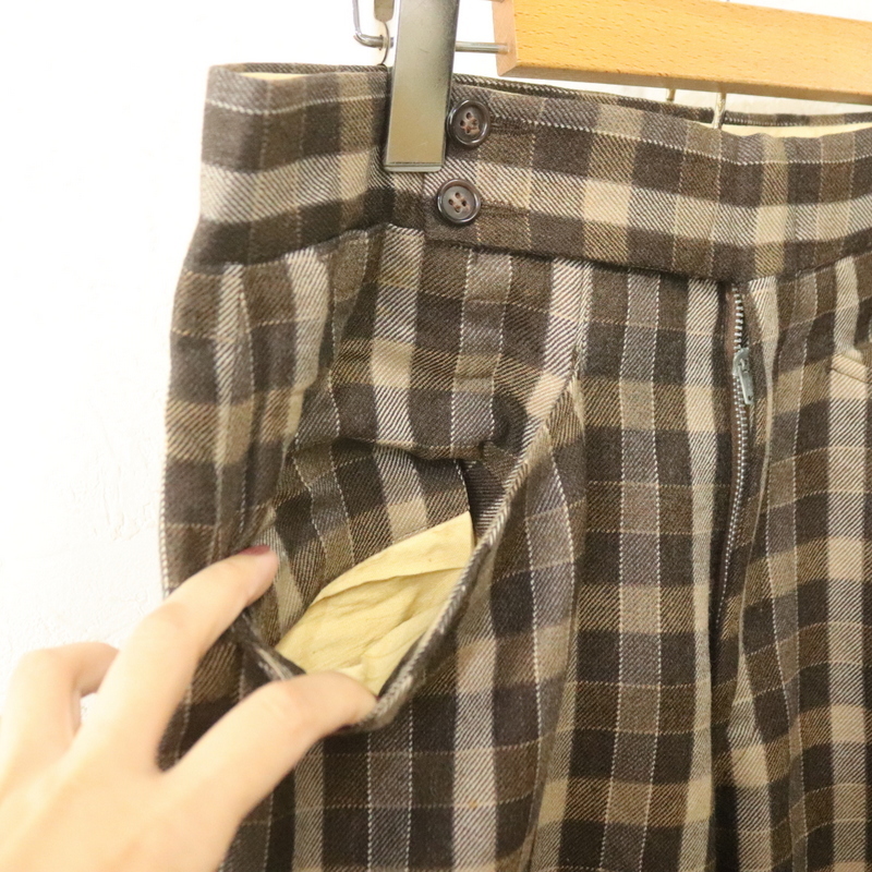 商品名 a900 60sビンテージ FINESTABRIC ウールスラックスパンツ■1960年代製 約Mサイズ ブラウン ブーツカット TALONジッパー チェック