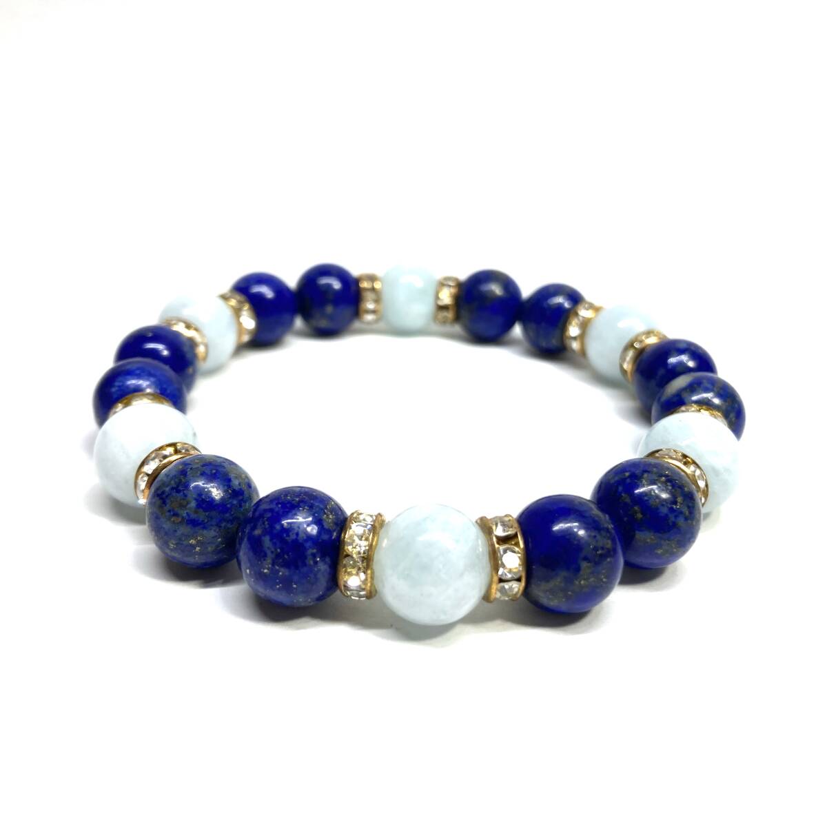 ラピスラズリ&アクアマリンパワーストーン ブレスレット 天然石ブレス (ゴールド) 10mm メンズ・レディース 魔除け ☆