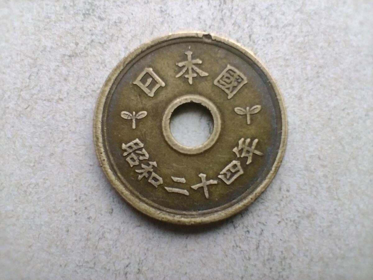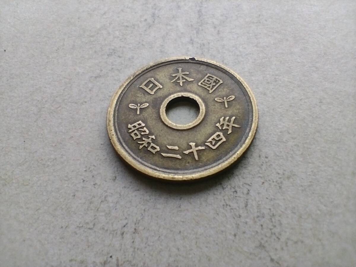 昭和24年 5円玉 昭和二十四年 1949年 一九四九年 五円玉 メダル コイン 貨幣 硬貨 フデ5 楷書体 筆文字 フデ文字 フデ五 ふでご 即決