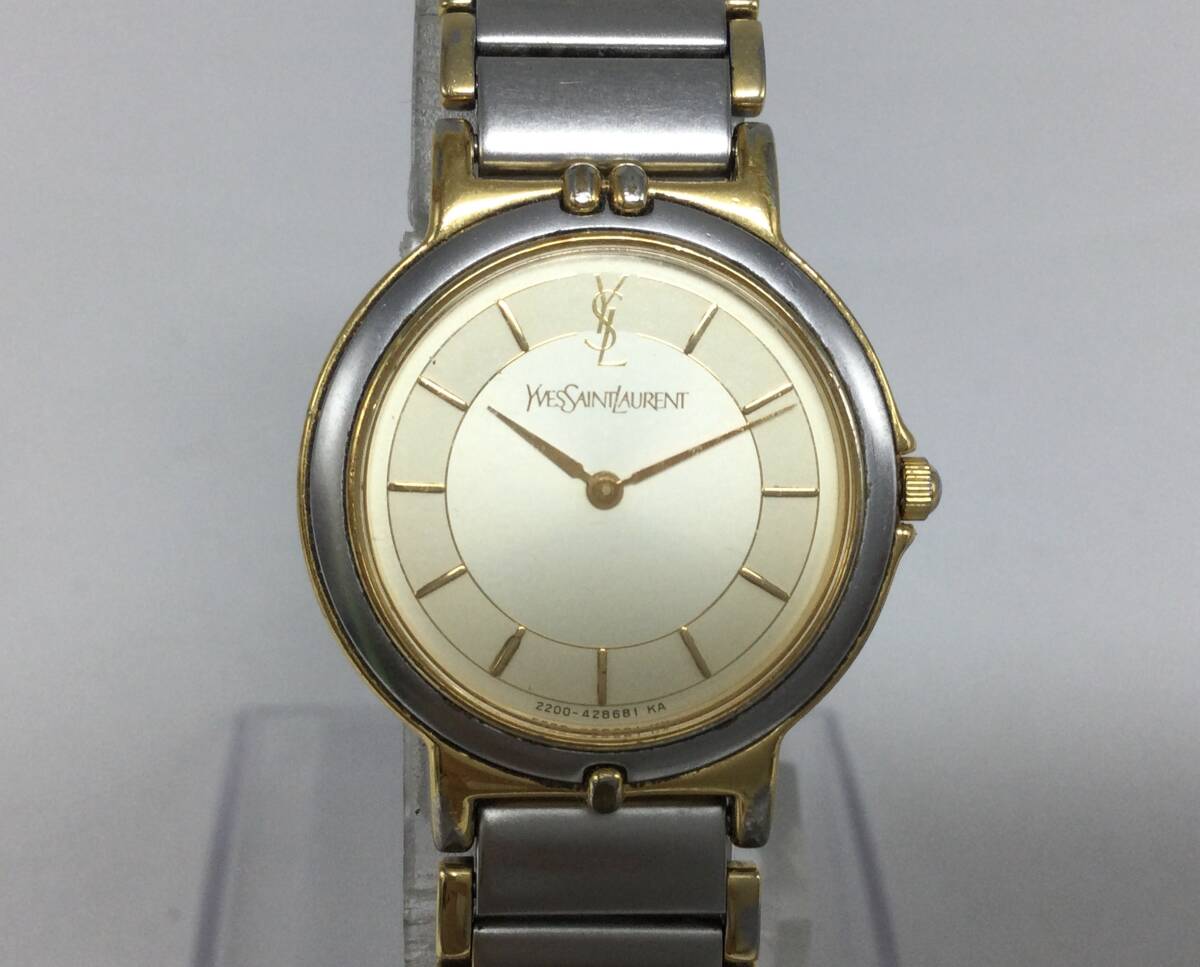 【QZ/不動品】イヴ・サンローラン ラウンド コンビ 2200-228481 クォーツ レディース 腕時計 Yves Saint Laurent 現状品