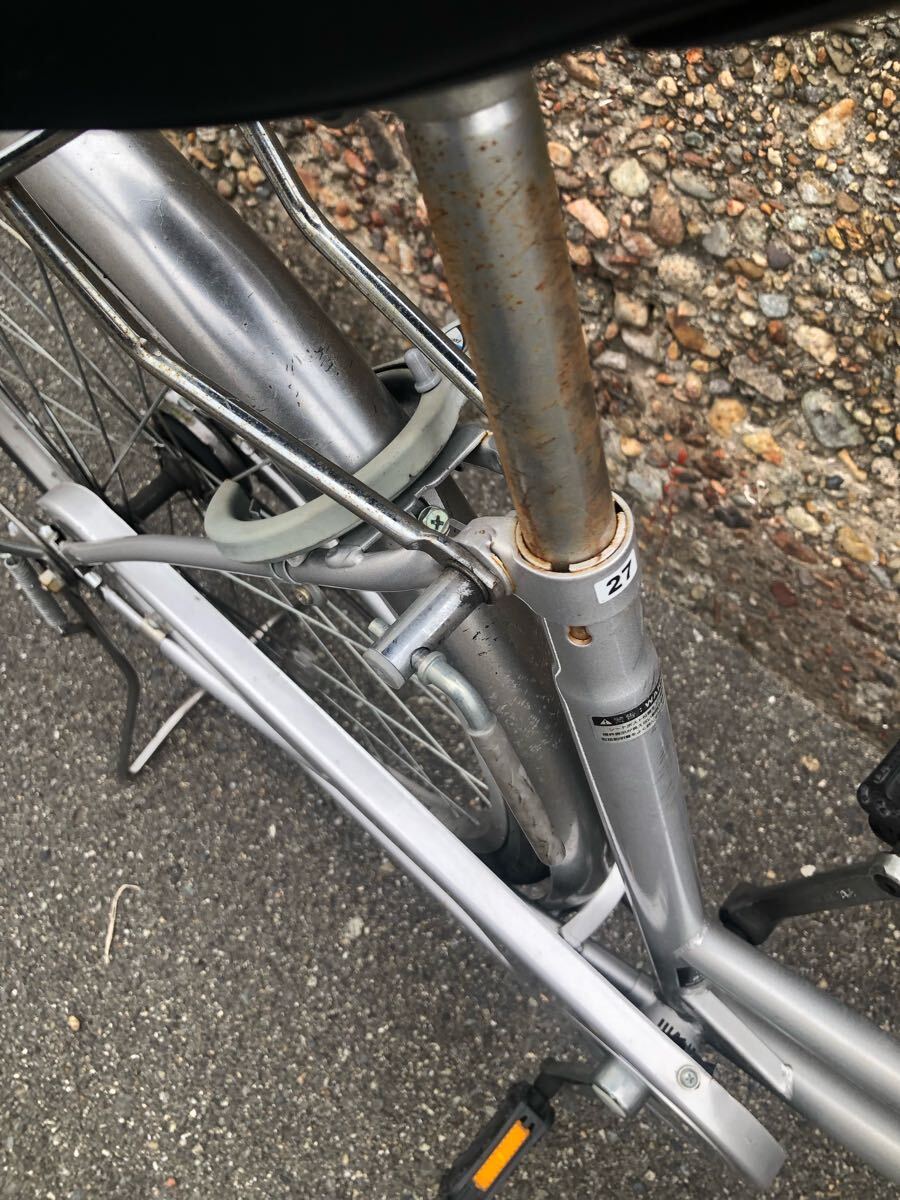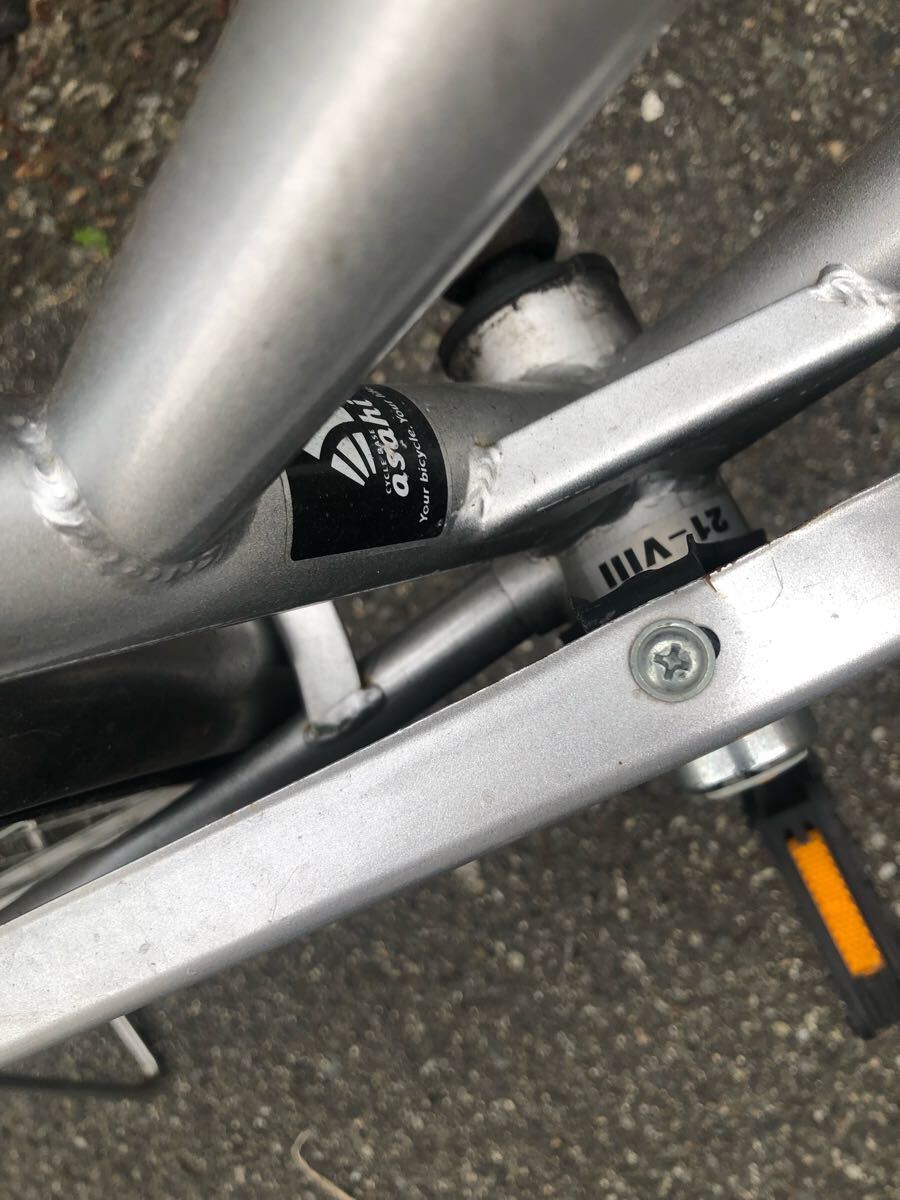 ●正規品 中古品 あさひ・カジュアリーリラックス 27インチ カラー(銀色にラメ入り) サイズ27インチ 縦 1130 横 1800 幅 550 ※使用可能 です。 ※直接のお渡しは可能ですが、 事前にコメント欄から入札者様の(地域・最寄り駅)をお知らせください。 当方が可能と判断した場合は返答させて頂きます。 インチ ●後輪チューブ・タイヤ交換済み 前輪はタイヤ亀裂ありの為走行は可能ですが、 交換をお勧め致します。 全体判断と致し使用可能な物となりますです。 ●あさひ正規店購入品ですのでご安心ください。 ※サビ・汚れ・劣化している部分は当然御座います。 中古品の為、点検及びメンテナンスをお勧め致します。 ※画像にてご覧下さいませ。 その他説明 ●落札時の初回連絡は2日以内。 受取り連絡は到着後(2日以内厳守) ●誤配・紛失等防止の為、補償ありの方法をお願い致します。 (補償の無い発送方法の場合は一切責任を負い兼ねます) ●同日ご落札物は負送料担軽減を考え同梱包と致します。 あくまでも当サービスですので同梱包をお断りさせて頂く場合も御座います。 ●梱包は無料の為 (リサイクル簡易梱包・その時ある物で対応) ●基本、当方の出品物にご興味のある方・ご希望の方のみがご覧頂ければと考えており、 何卒ご理解の程宜しくお願い致します。 | |||