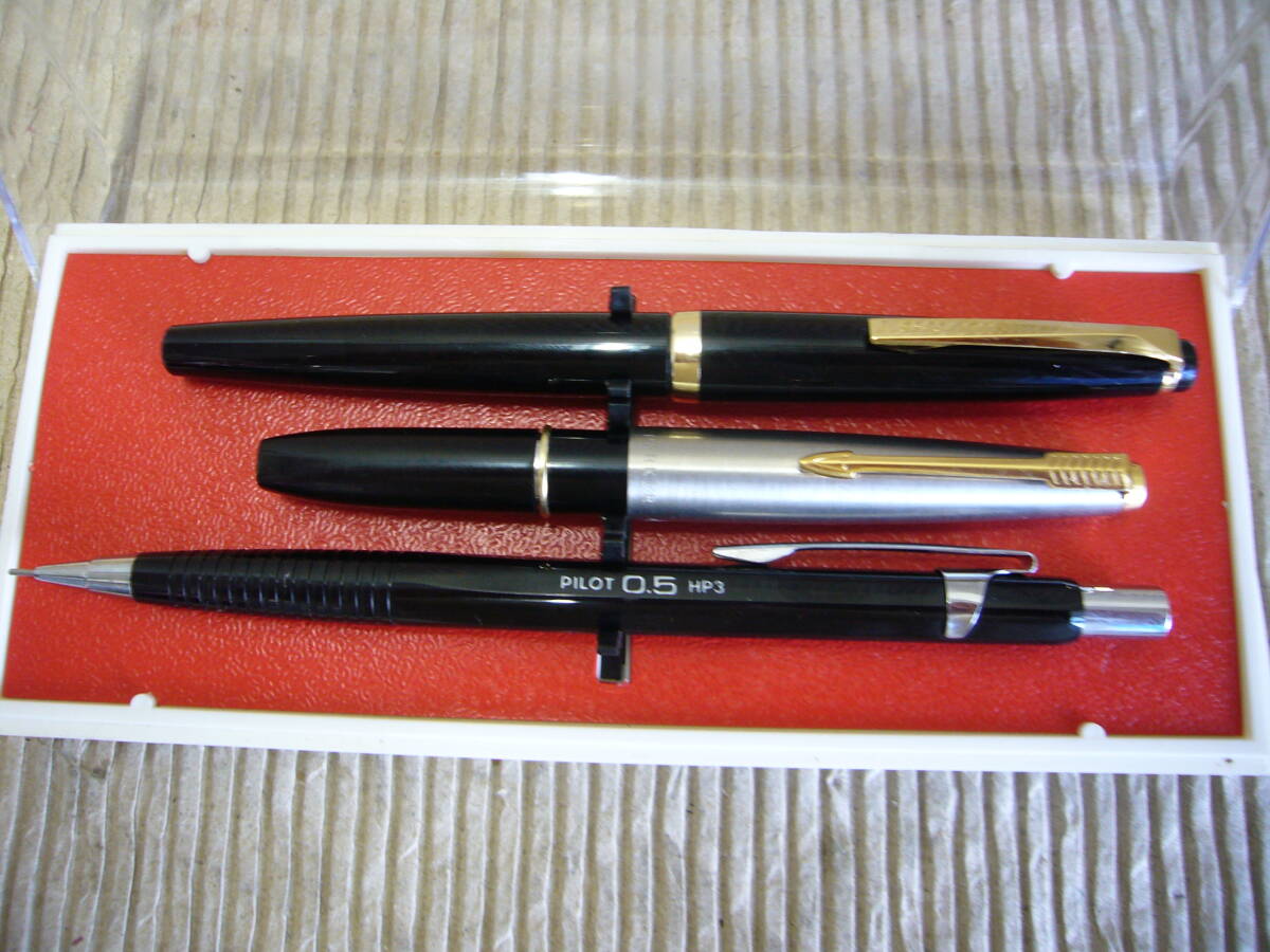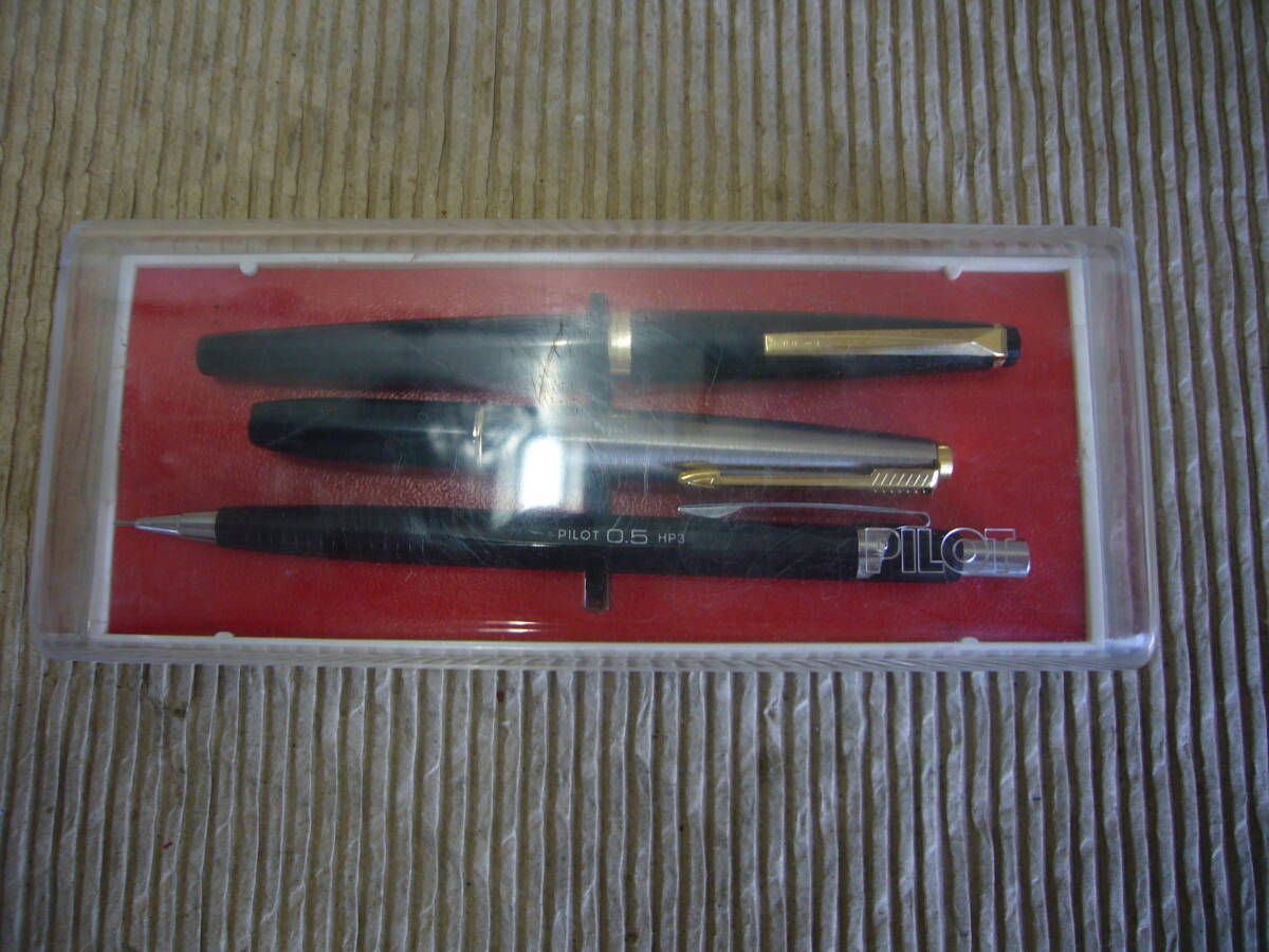 使用状況:PILOT 万年筆 2本 (シルバーキャップのペン先 14K) 及び シャープペン 1本 あわせて3本 ケース付き 中古品