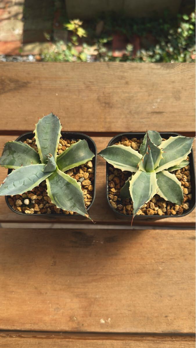 いずれも斑入りが魅力的で霜や雪にも強く耐寒性も抜群です。ドライガーデンにわ即戦力のアガベになります。