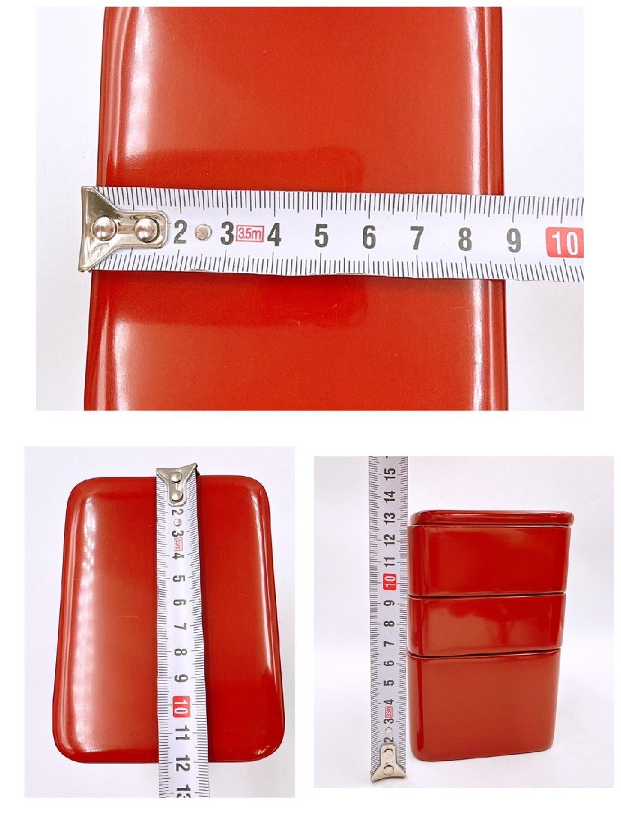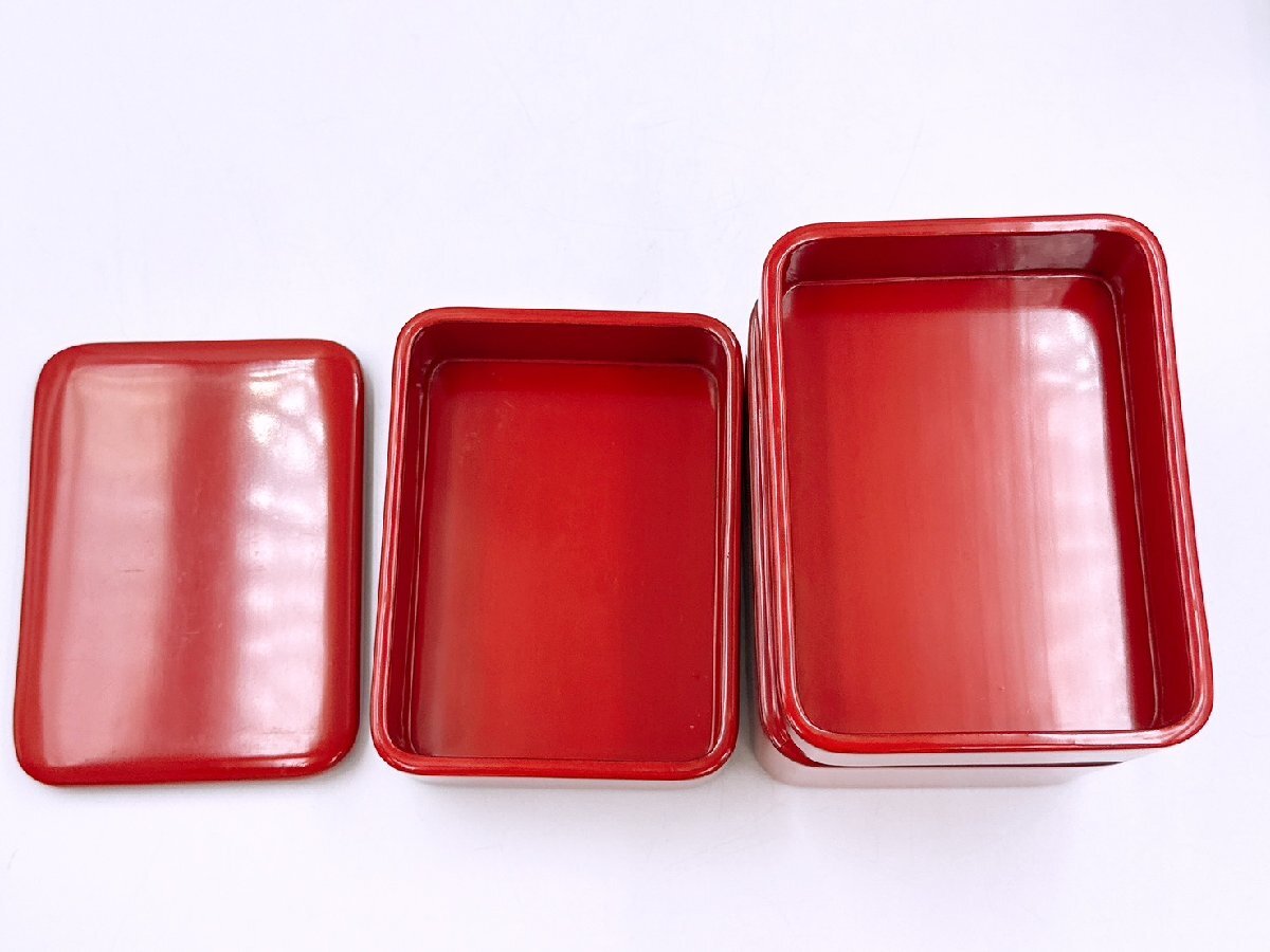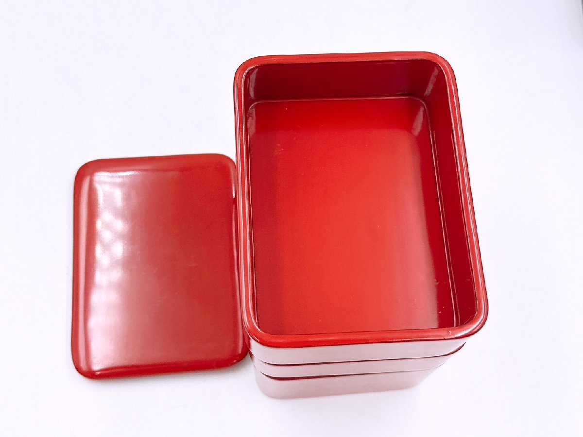 1円 輪島塗 ビンテージ 漆塗り 朱色 3段重 レトロ アンティーク 和物 弁当箱(辨當箱)現状保管品【KO014】
