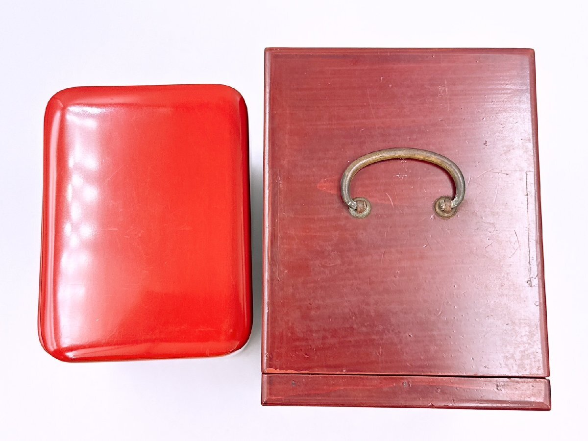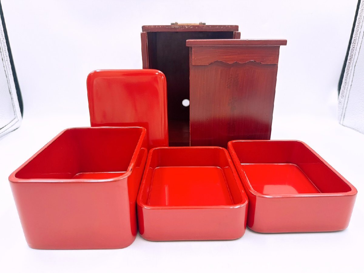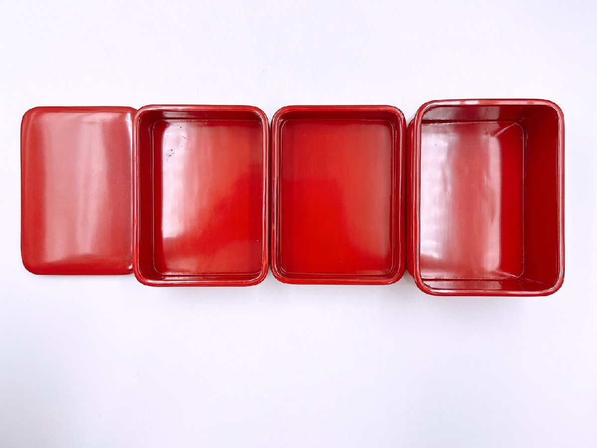 1円 輪島塗 ビンテージ 漆塗り 朱色 3段重 レトロ アンティーク 和物 弁当箱(辨當箱)現状保管品【KO014】