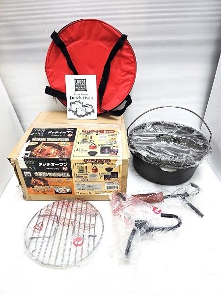 【中古未使用品】 ロゴス LOGOS ダッチオーブンM 5点セット 本格派 ワイルド料理 アウトドア キャンプ ○YR-19380○