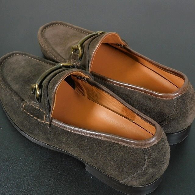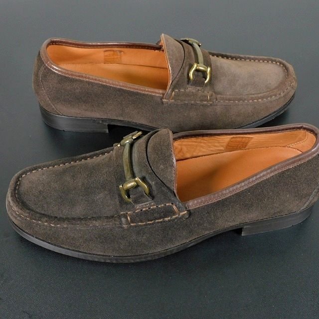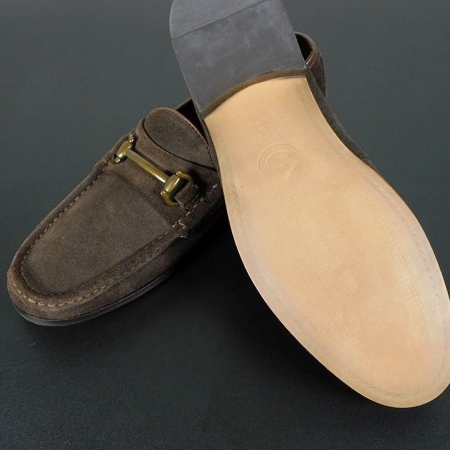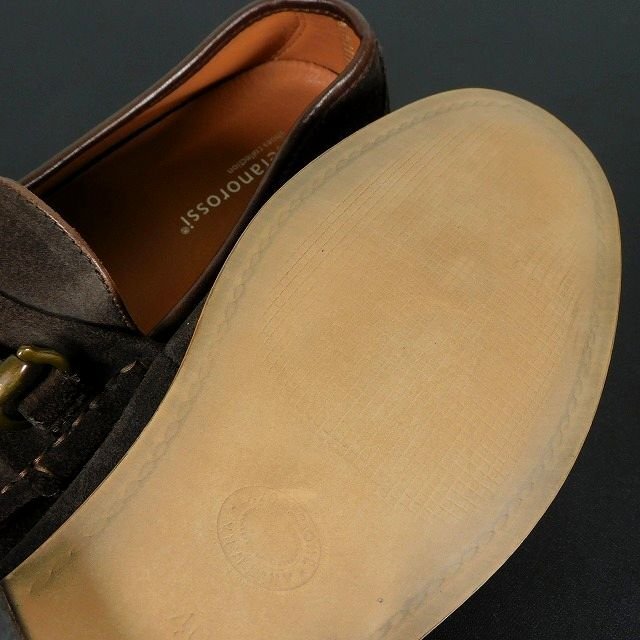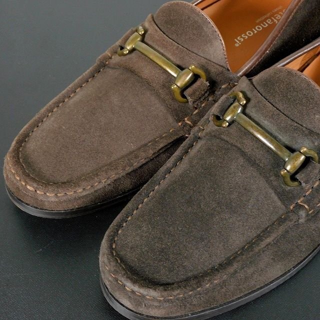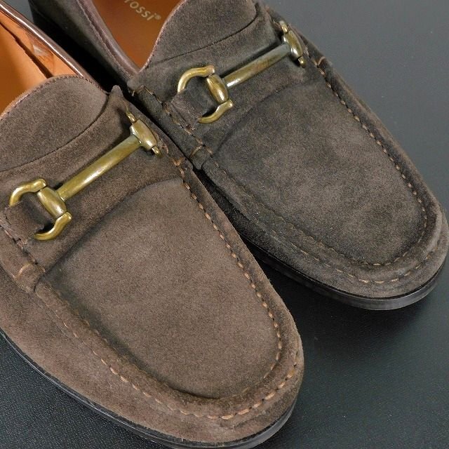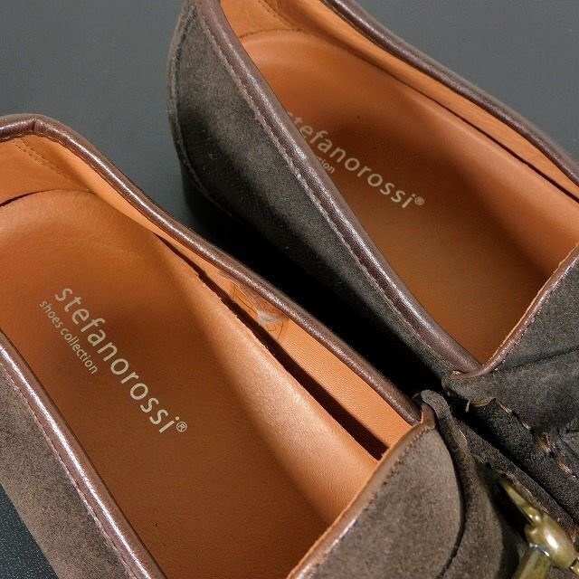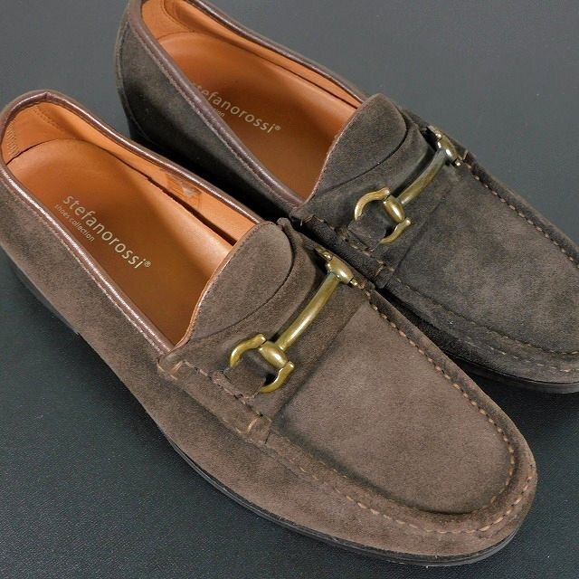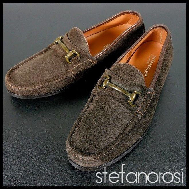未使用 訳有 1円~ ステファノロッシ ビットローファー 25-25.5cm 濃茶 スウェード スリッポン シューズ stefanorossi メンズ【4830】
