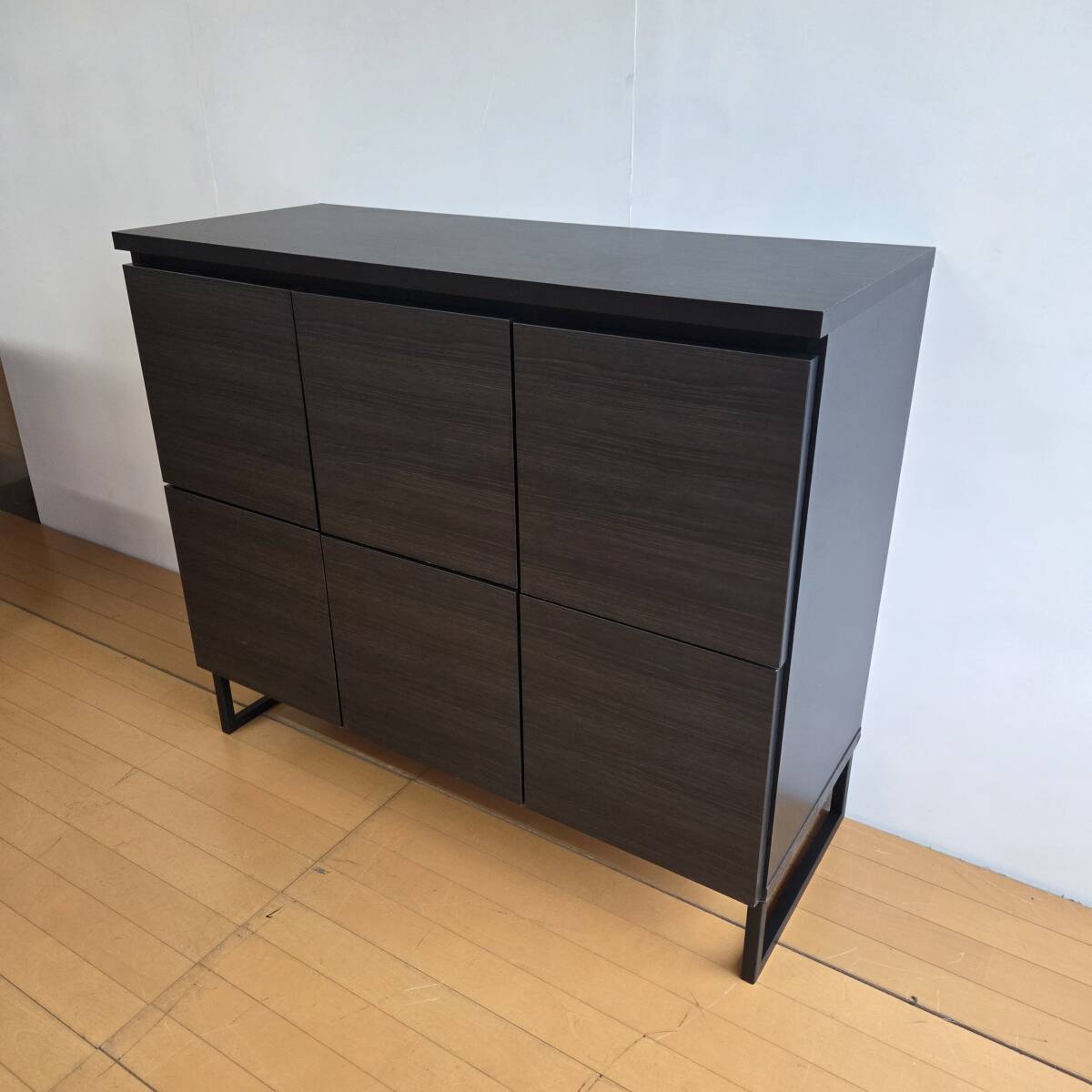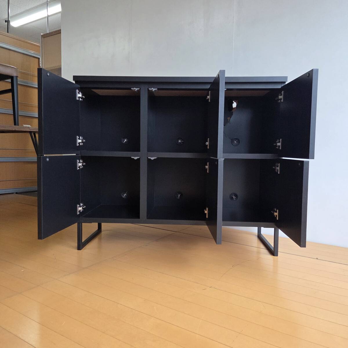 未使用訳あり スクエアキャビネット 扉タイプ 幅106cm ディスプレイ リビング ブラック 黒 木製 ラック スクエア 棚 リビングボード