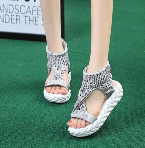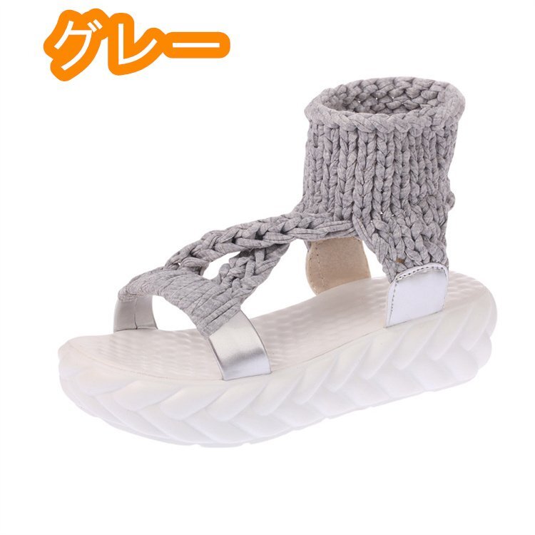 サンダル オープントゥ ローマ 毛糸 厚底 【37】23.5cm ホワイト