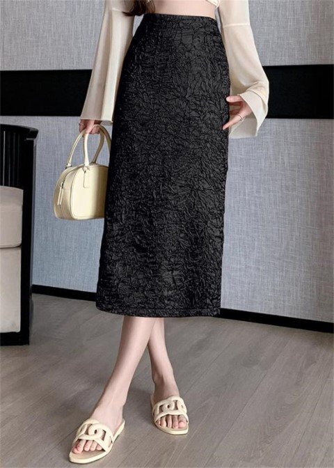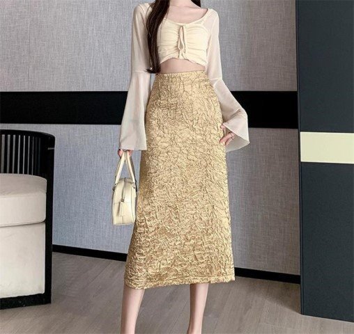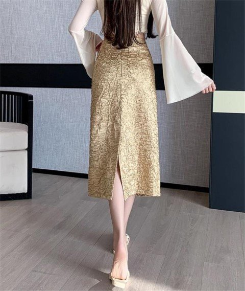 ひざ丈スカート ミディアム丈 タイトスカート Aラインスカート スプリット入り きれいめ レディース XL シャンパン