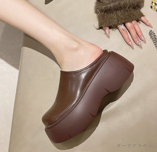 【高品質】全2色 スリッポン ローファー モカシン 厚底靴 プラットフォーム 切り替え シンプル 40 ダークブラウン