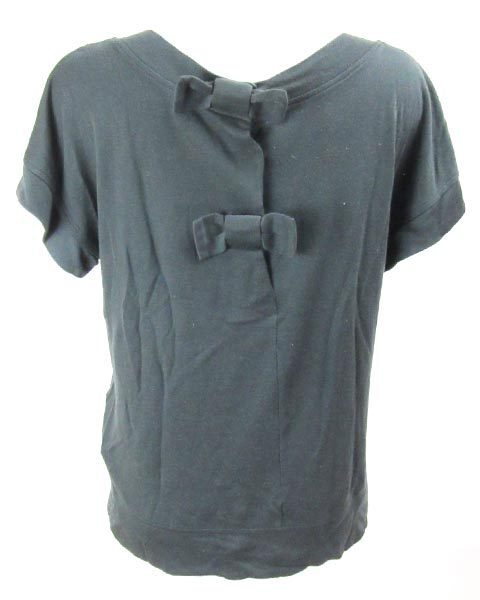| 肌触りの良いリヨセルのカットソー。胸元のあきが大きめでオフショルダー風なおち感のある着こなしが楽しめます。バックスタイルは大き目リボンが2つついていてジルスチュアートらしいフェミニンなデザインが入っています。 |