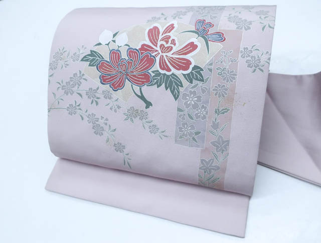 リサイクル商品のため、全体の所々にヤケ、お太鼓上やお太鼓裏に汚れがございます。 また、縫い止まりがほつれて開いておりますが、着用可能なお品です。 地色は、くすみピンクです。 1枚目の画像が近いお色かと思われます。 素材は化繊です。 |