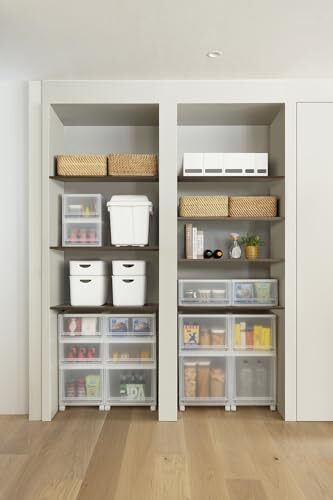 ・シンプルなデザインでどんなお部屋にも最適。奥行が40cmで短いのでパントリーなどの省スペースにも最適な収納ケース。