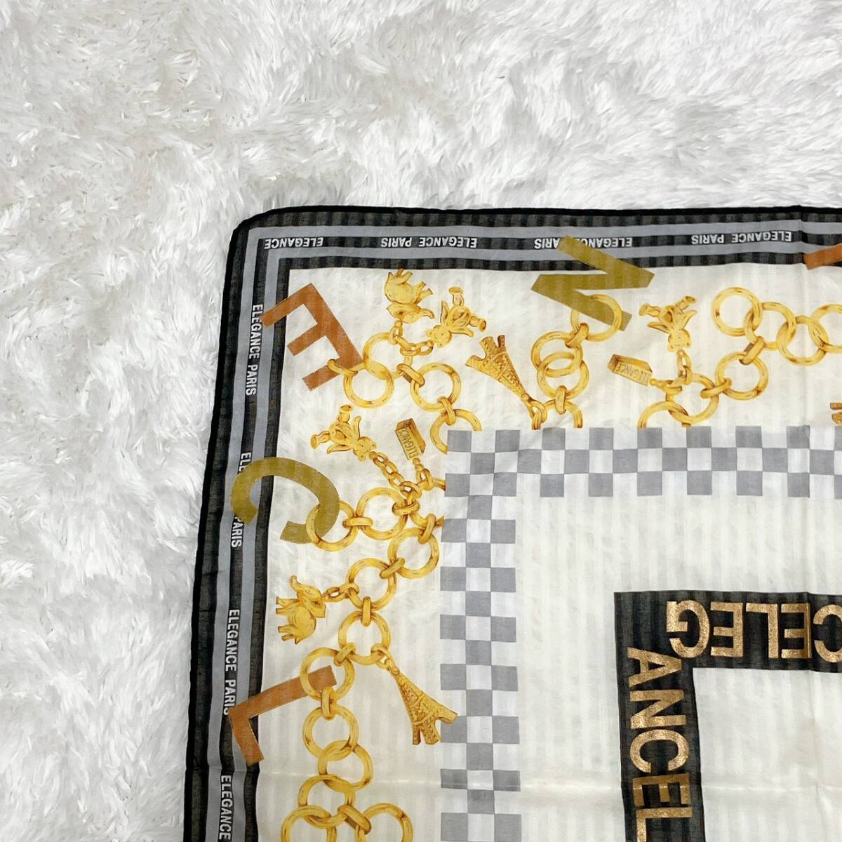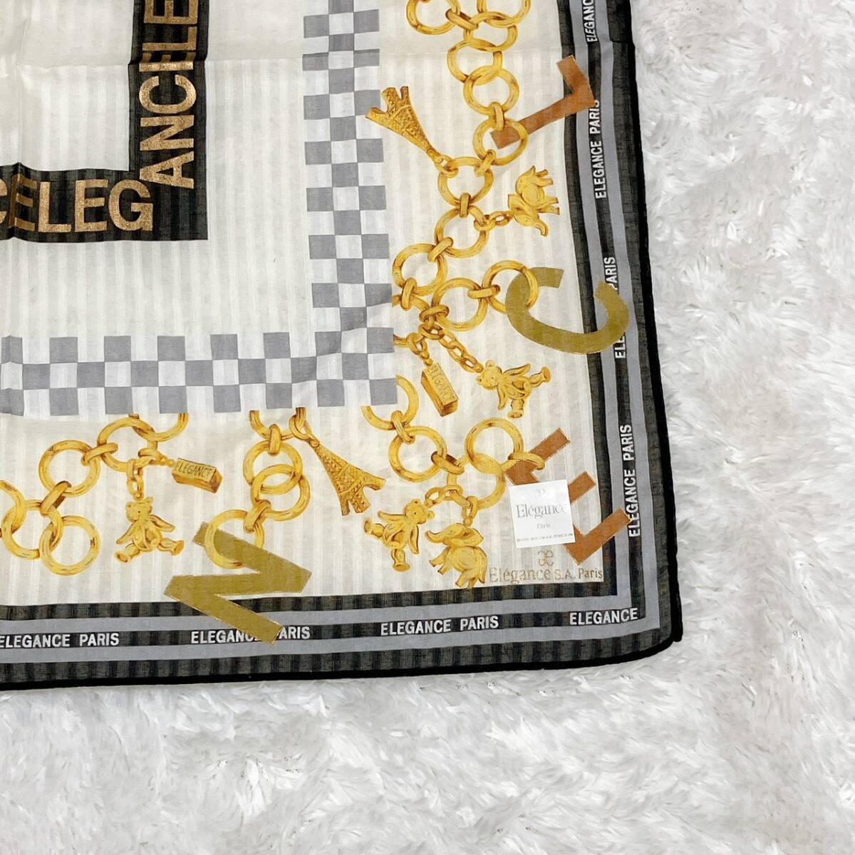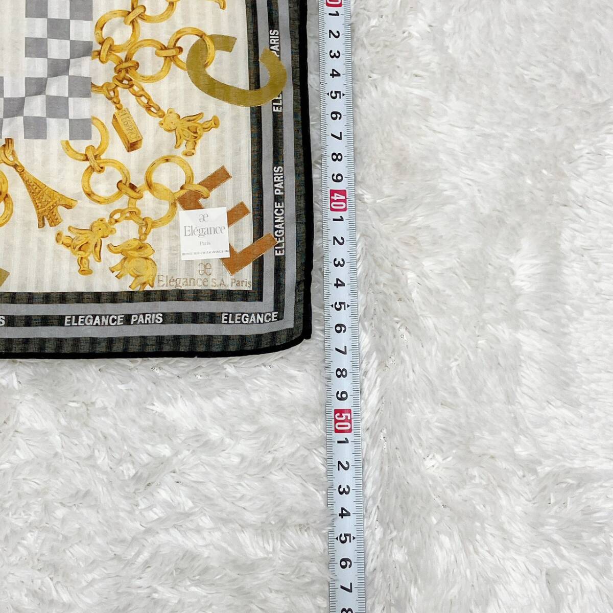 lgance Paris エレガンス パリ スカーフ チェーン柄 綿100% グレー系 約50cm×50cm