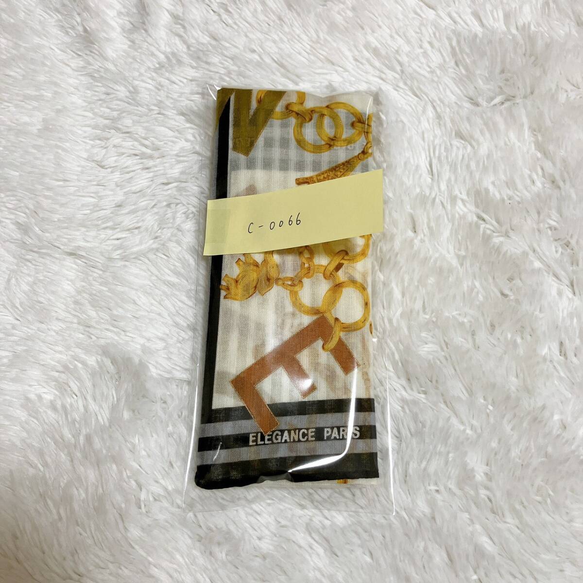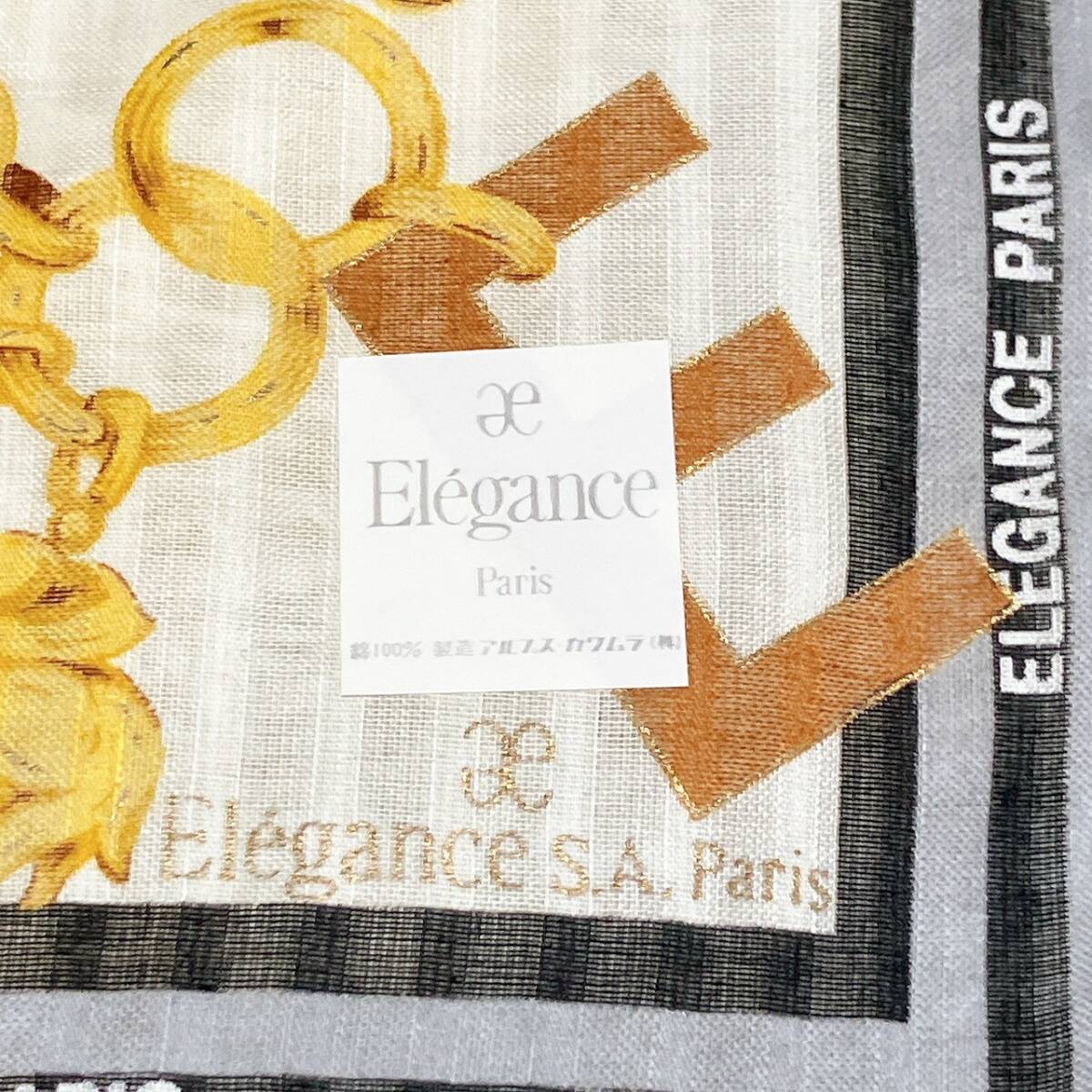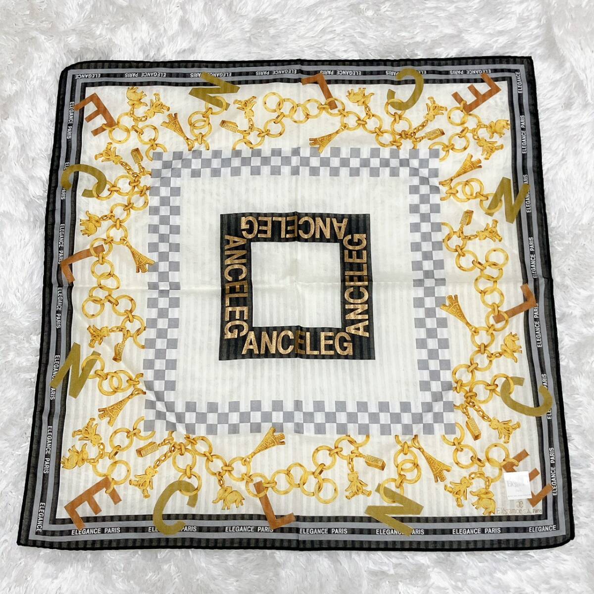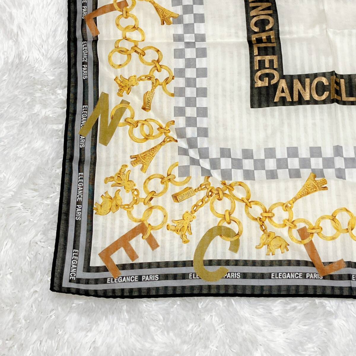 lgance Paris エレガンス パリ スカーフ チェーン柄 綿100% グレー系 約50cm×50cm