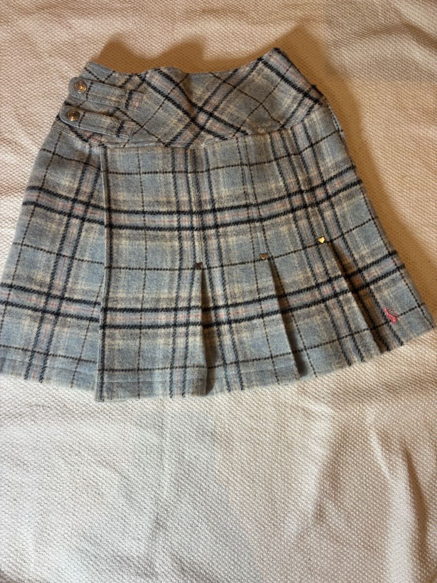 pomponettoポムポネット スカート 水色チェック 冬 厚手