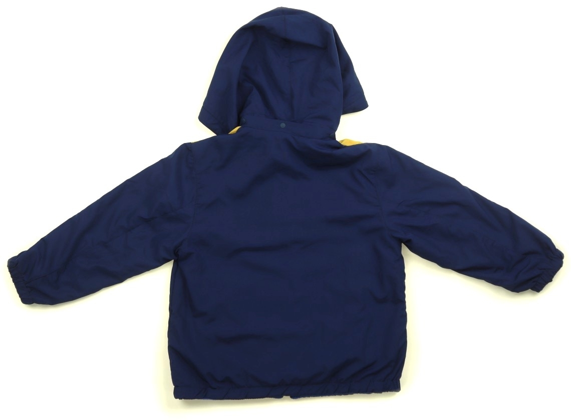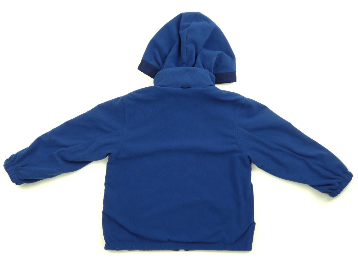 ポリエステル素材。フリース素材の裏地付き。フードの取り外しが可能です。リバーシブル仕様。部分的に毛玉感があります