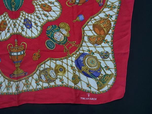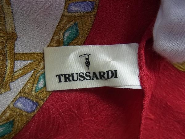 ■美品■ TRUSSARDI トラサルディ 大判 スカーフ ストール ショール レディース レッド系×マルチカラー DJ1640