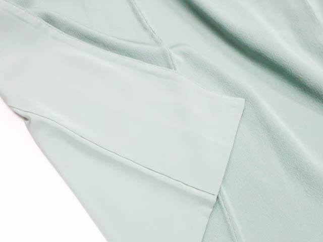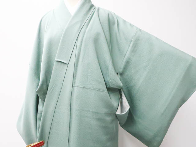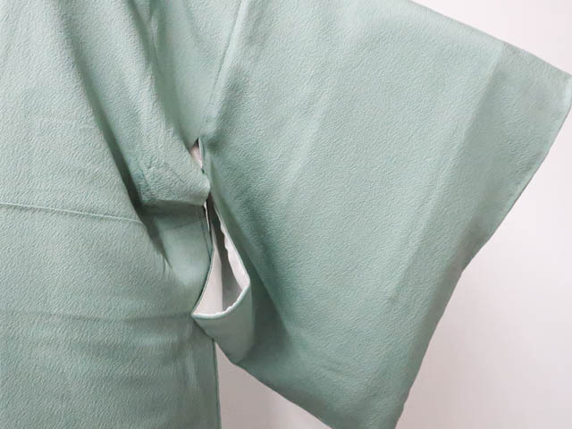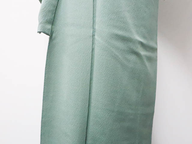 地色は くすみ緑です。 1枚目の画像が近いお色かと思われます。 素材は正絹です。 |