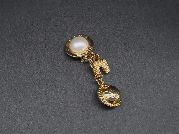 ■美品■ CELINE セリーヌ ヴィンテージ サークル金具 クリップ式 パール イヤリング アクセサリー ゴールド系×アイボリー系 DK5838