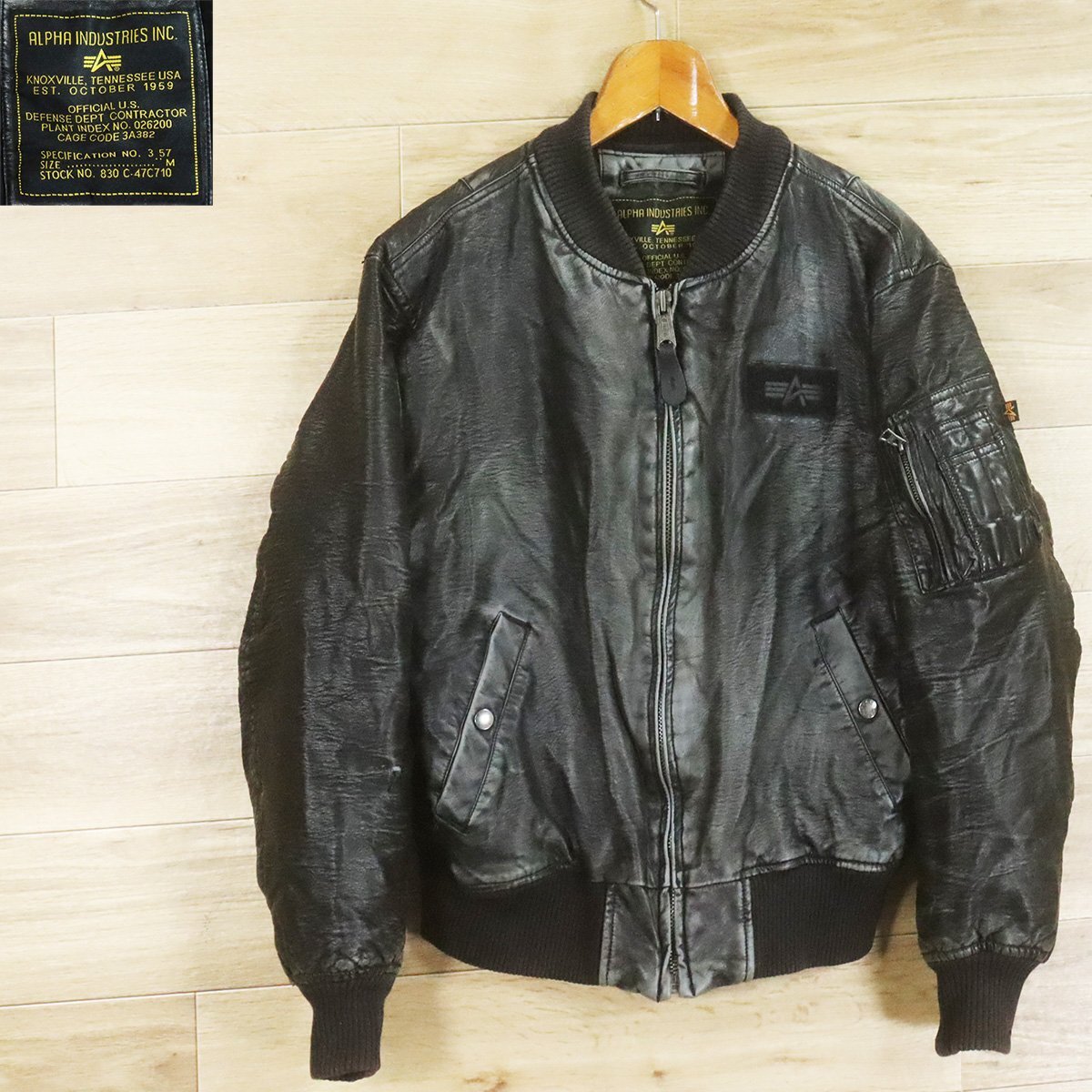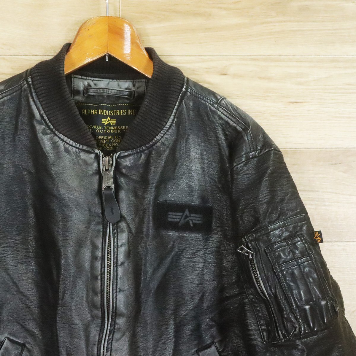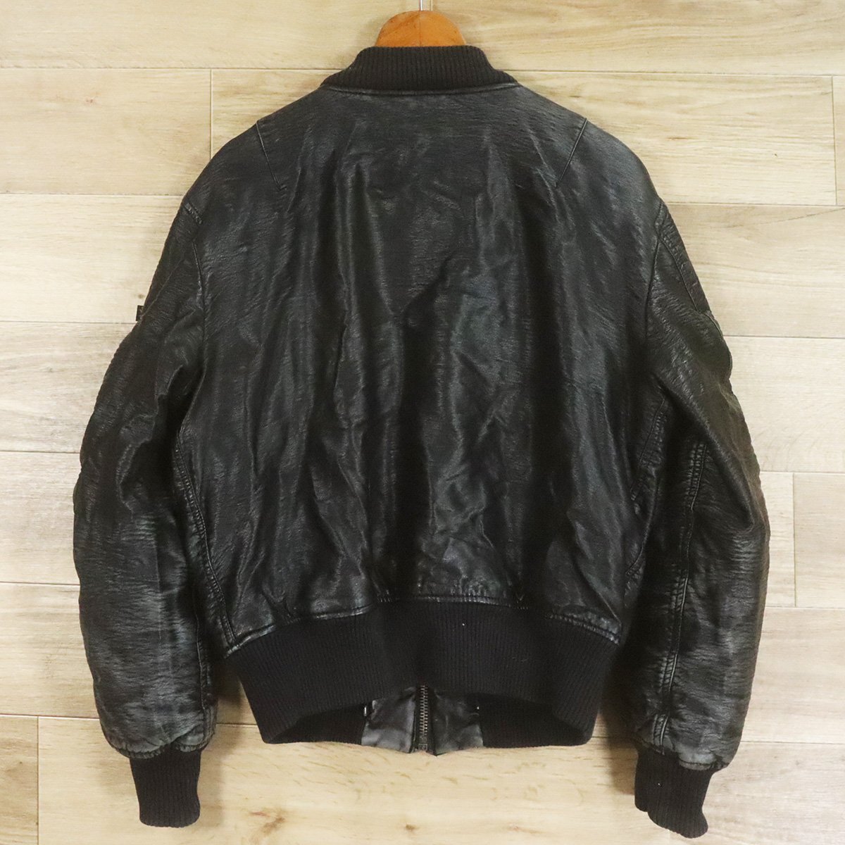 =6O/O9.15-8 ALPHA INDUSTRIES INC. アルファインダストリーズ MA-1 レザーフライトジャケット ジップアップ 革ジャン 皮ジャン