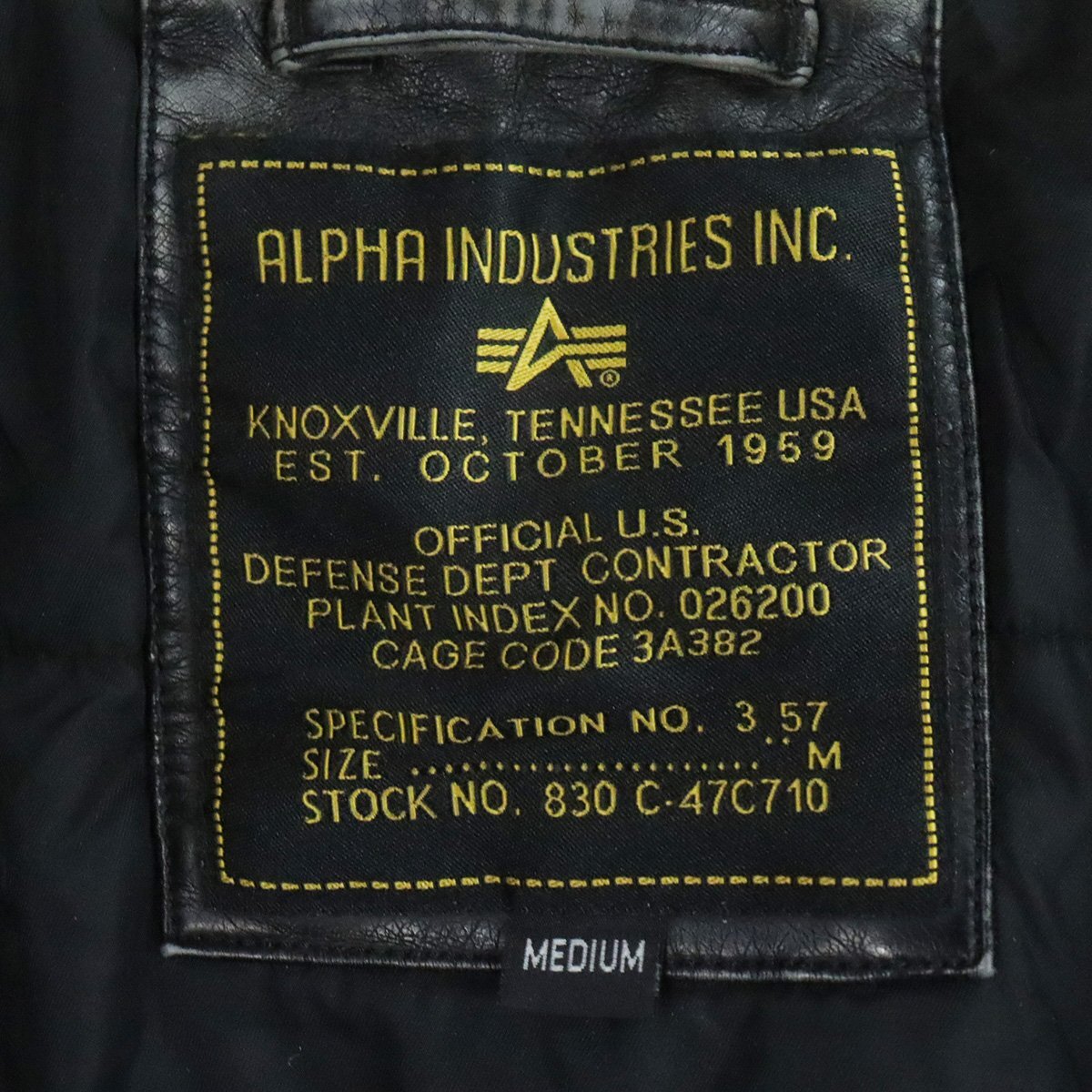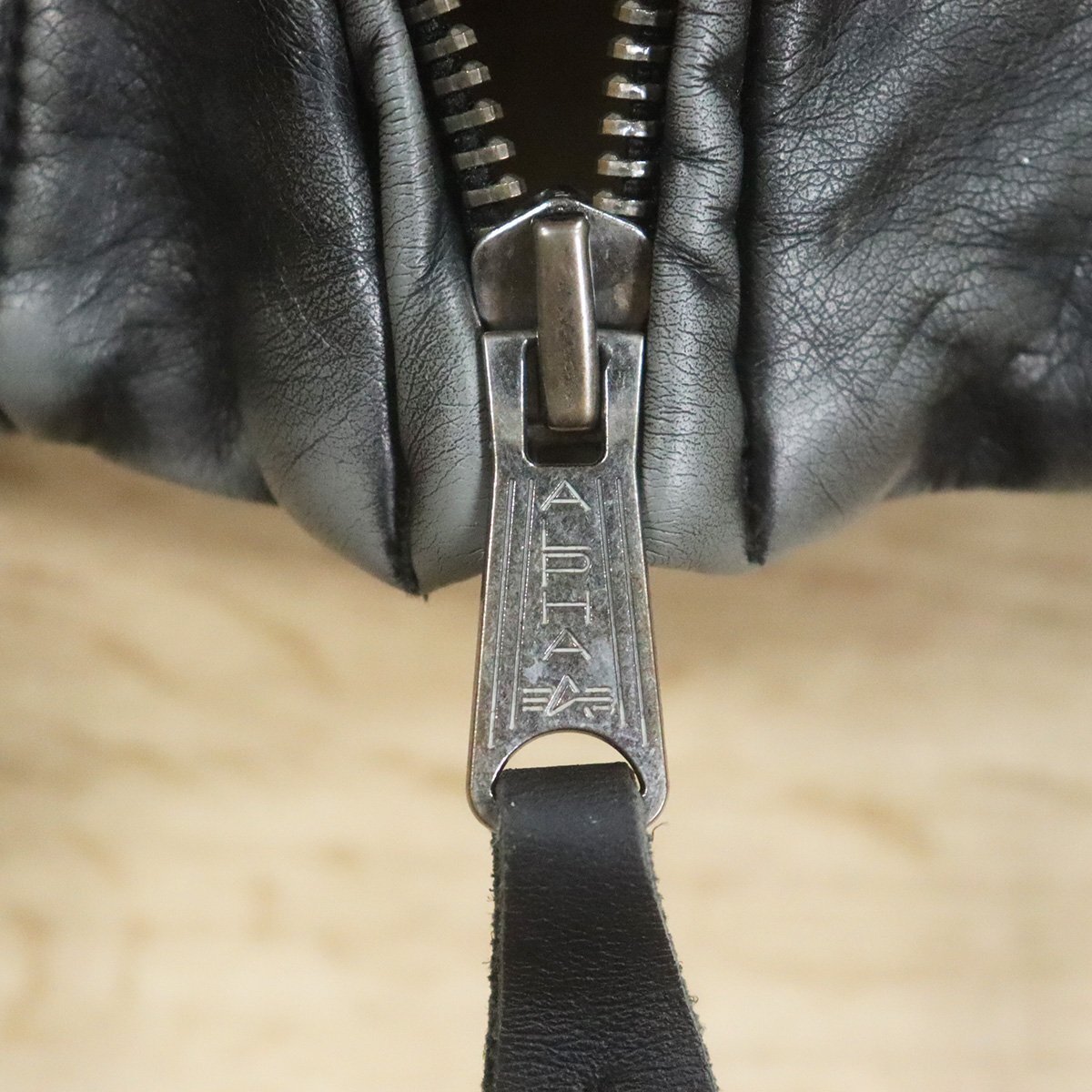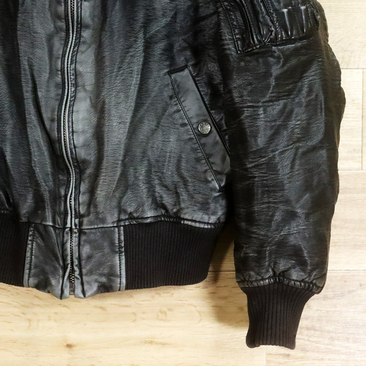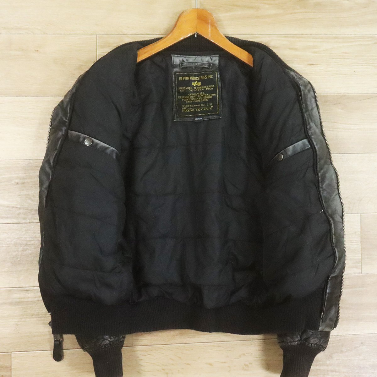 =6O/O9.15-8 ALPHA INDUSTRIES INC. アルファインダストリーズ MA-1 レザーフライトジャケット ジップアップ 革ジャン 皮ジャン