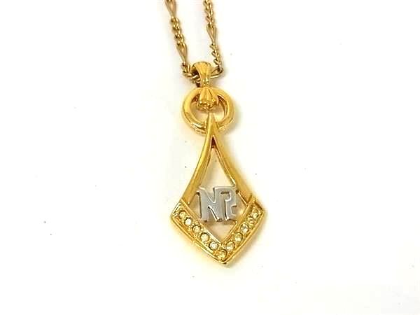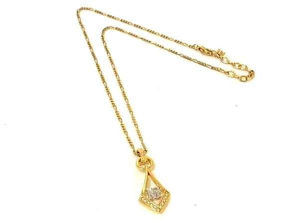 ■美品■ NINA RICCI ニナリッチ ロゴモチーフ ラインストーン ネックレス ペンダント アクセサリー レディース ゴールド系 DI0101