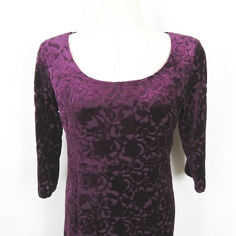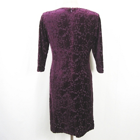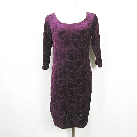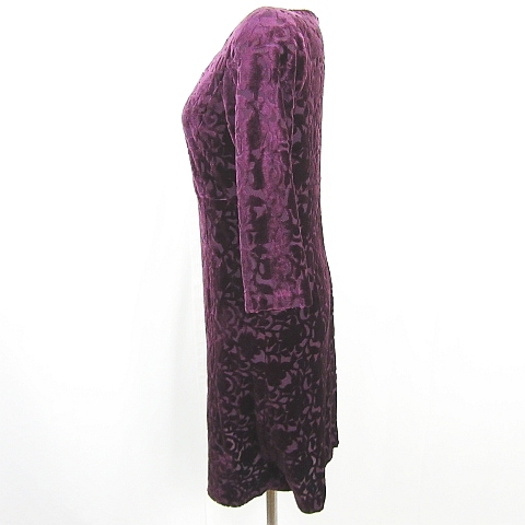 クミキョク 組曲 KUMIKYOKU ベロア ワンピース 膝丈 七分袖 2 パープル 総柄 kz13530 レディース