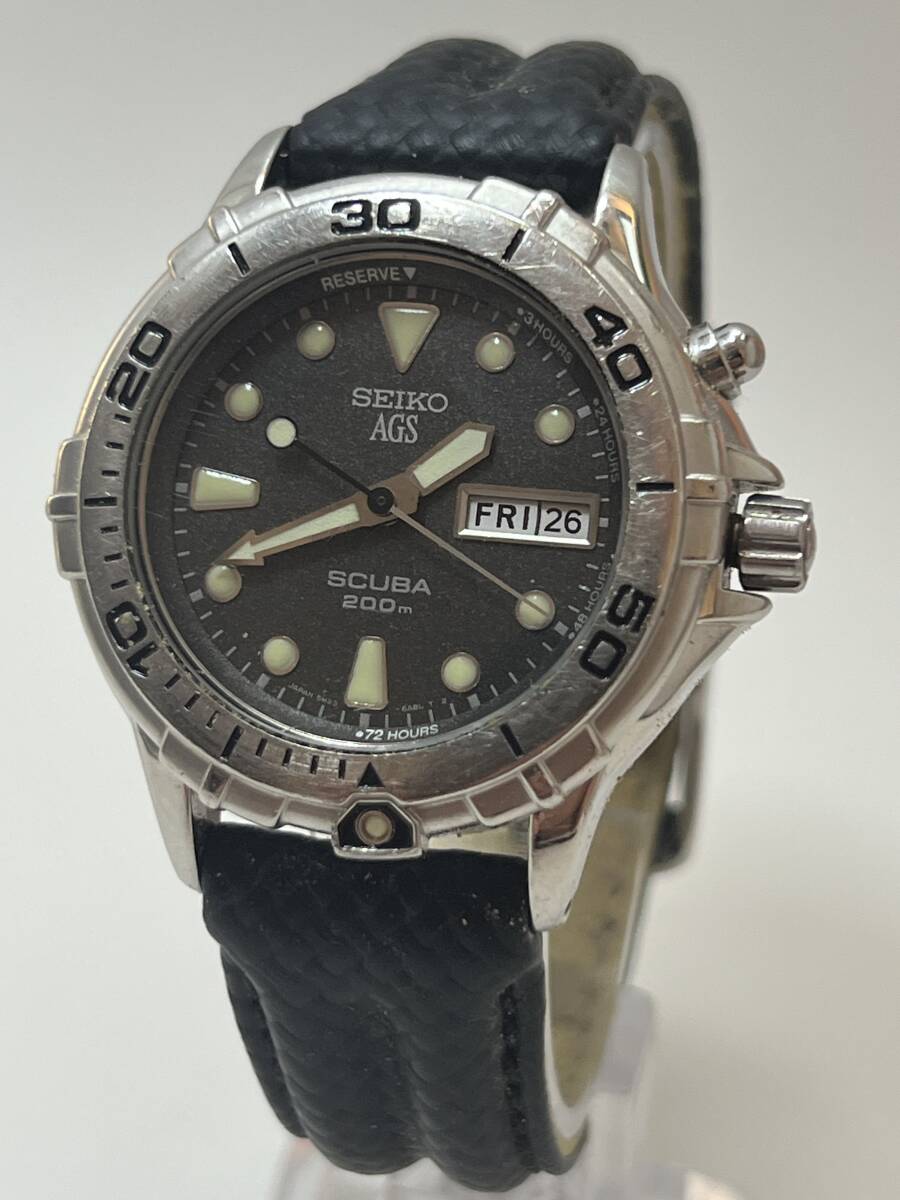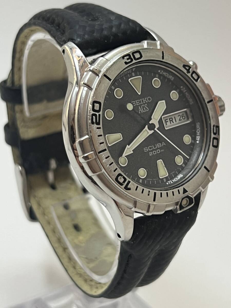 動作 SEIKO セイコー スキューバ AGS 5M23-6A60 オートクォーツ グレー文字盤 メンズ 腕時計