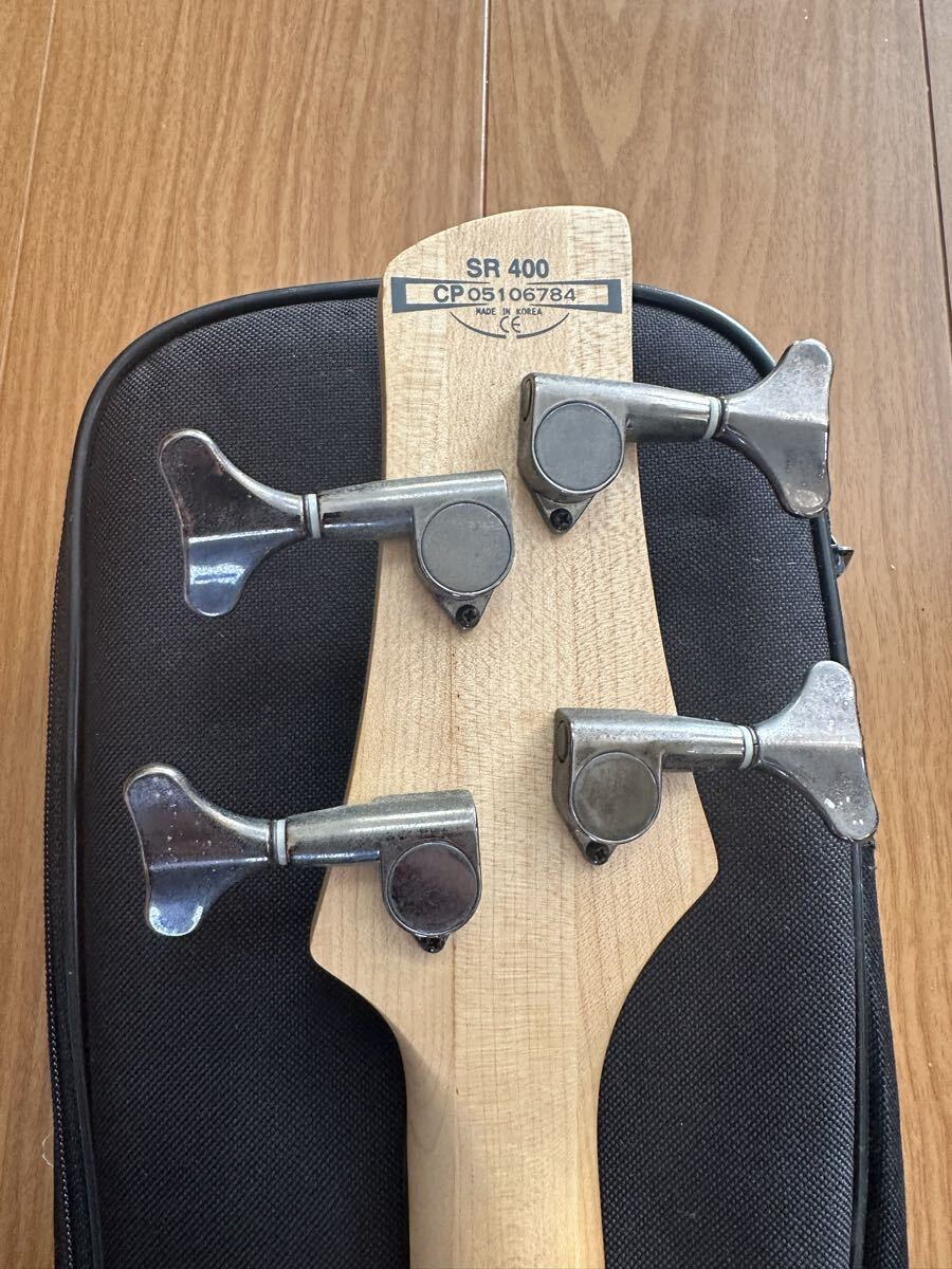 Ibanez エレキベース SR400 色はメタリックの入ったブラックで、税抜定価65,000円になります。